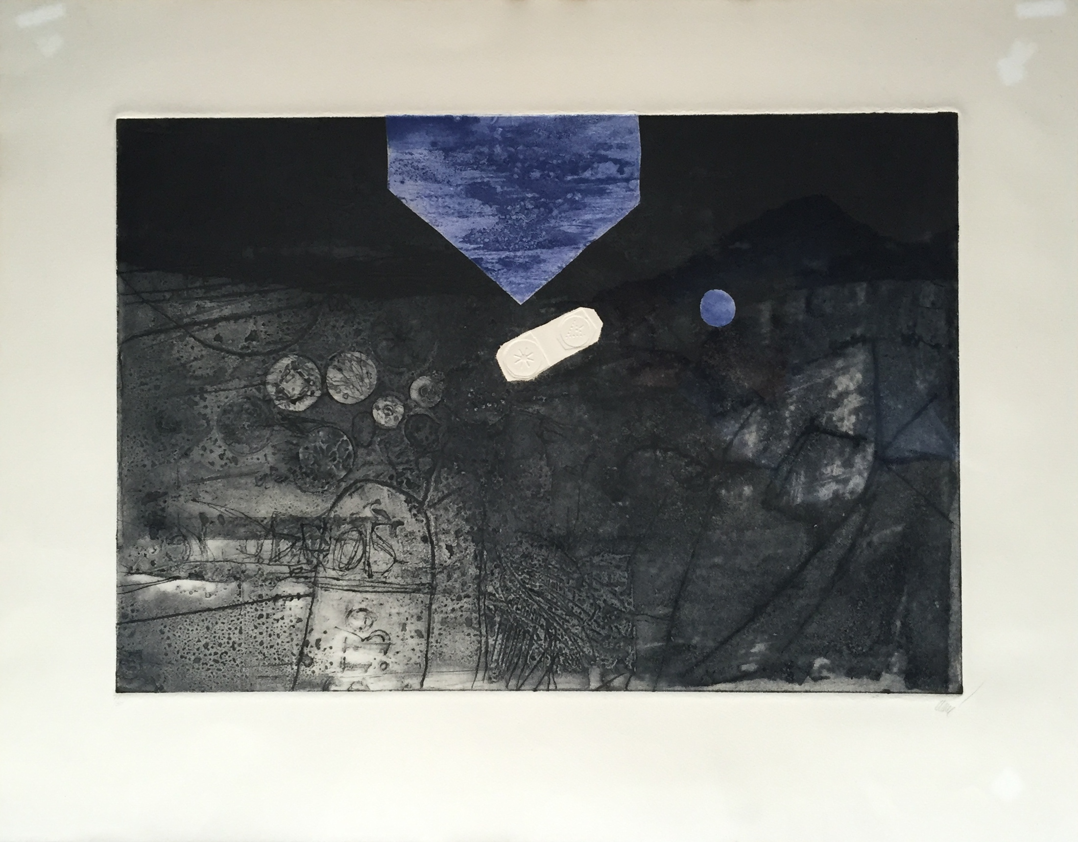 Aiguafort,gravat al carborundum i gaugrage, edició 7/35, mides 72 x 92 cm , mides amb marc 77 x 97 cm.
