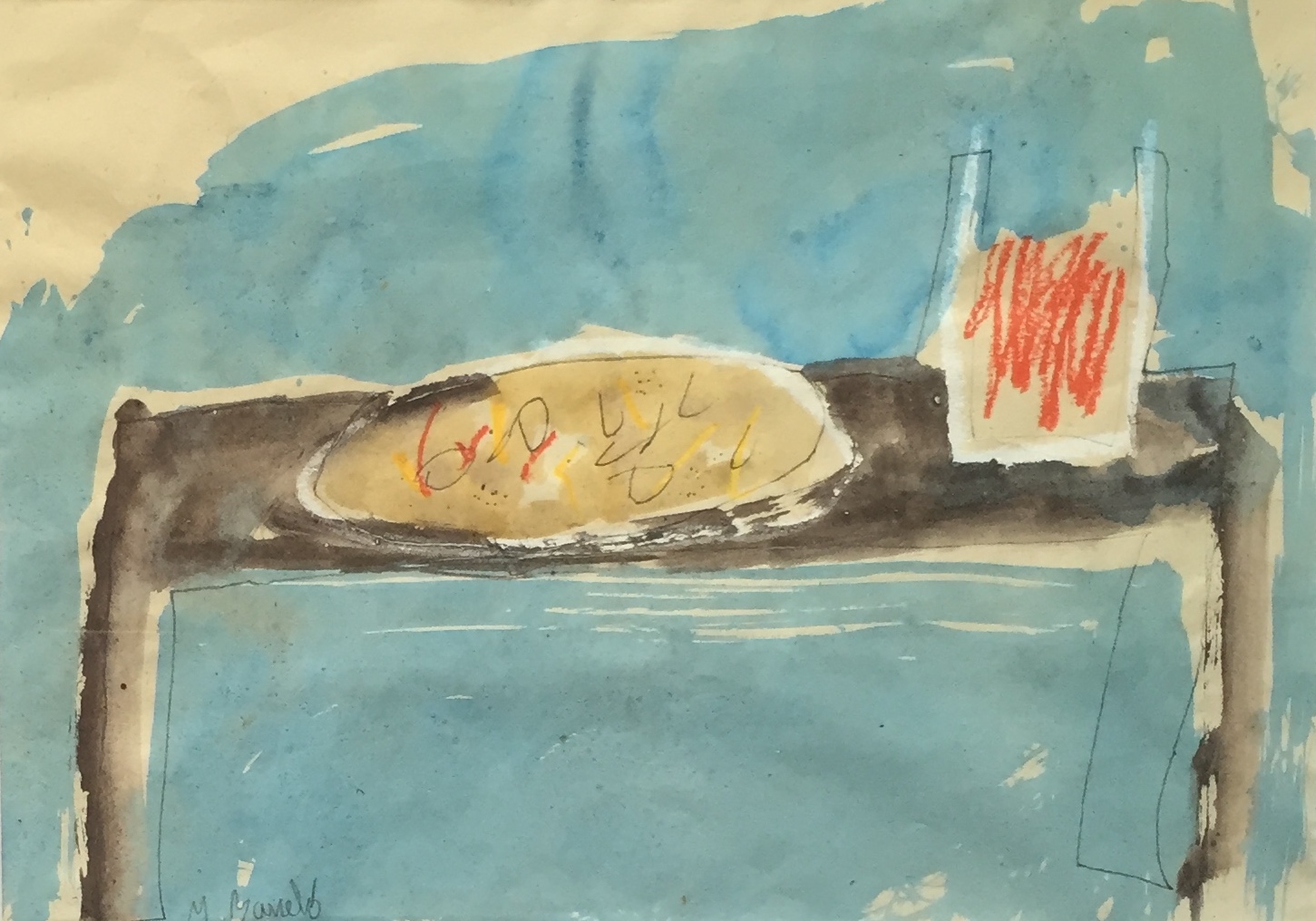 Pintura mixta sobre paper, mides 35 x 49 cm , mides amb marc 59 x 73 cm.