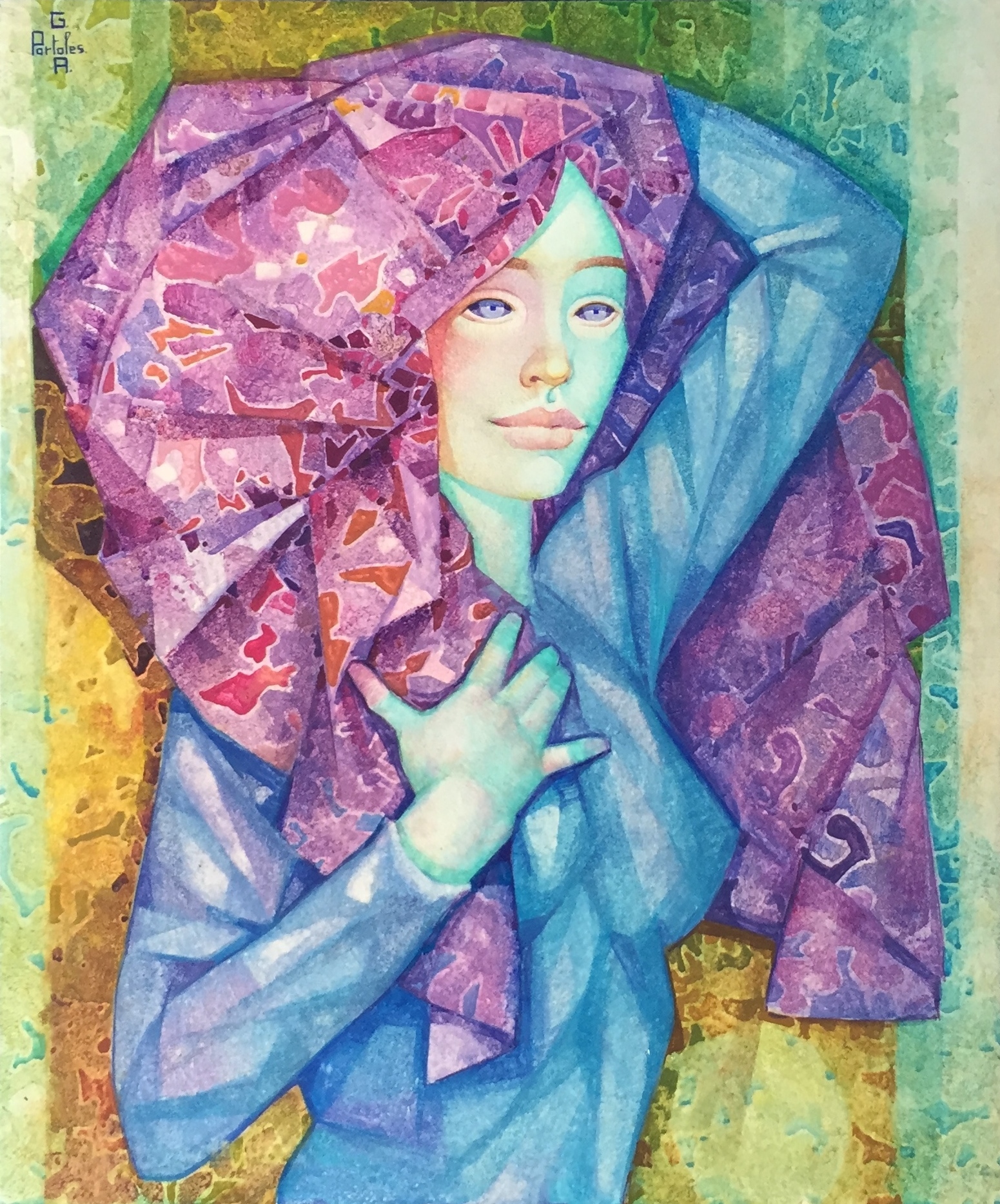 Gabriel Portolés es un pintor de Jaca que vive desde hace años en Barcelona. ( 1930) Uno de los secretos de la obra de este gran pintor aragonés, radica en el color, en las transparencias que alcanza gracias a la utilización de la técnica del Temple al huevo. Portoles ha rescatado y recuperado, una vieja técnica medieval, una técnica consumada, que el ha renovado y lo ha hecho suya, fue discípulo del maestro Jorge Alumá, quien le enseño todo sobre el retablo y la alquimia del temple y por este medio el puede sacar diversas tonalidades y texturas con colores brillantes, transparentes, en especial los amarillos, ese amarillo que caracteriza su obra, y los matices están logrados con el color muy diluido y por superposiciones generando así una amplia gama de tonalidades, pinta con ritmos geométricos a través del dibujo que es la perfección descriptiva, compuestas por líneas clásicas, y formas góticas. El pintor aragonés ha expuesto en numerosas ocasiones, tanto en nuestro país como en Francia, Alemania y los Estados Unidos. Su obra esta presente en colecciones importantes dentro y fuera del país.Es creador de un mundo especial y mágico, Gabriel Portolés convierte a cada uno de sus retablos en una admirable muestra de las posibilidades que el realismo confiere al arte.