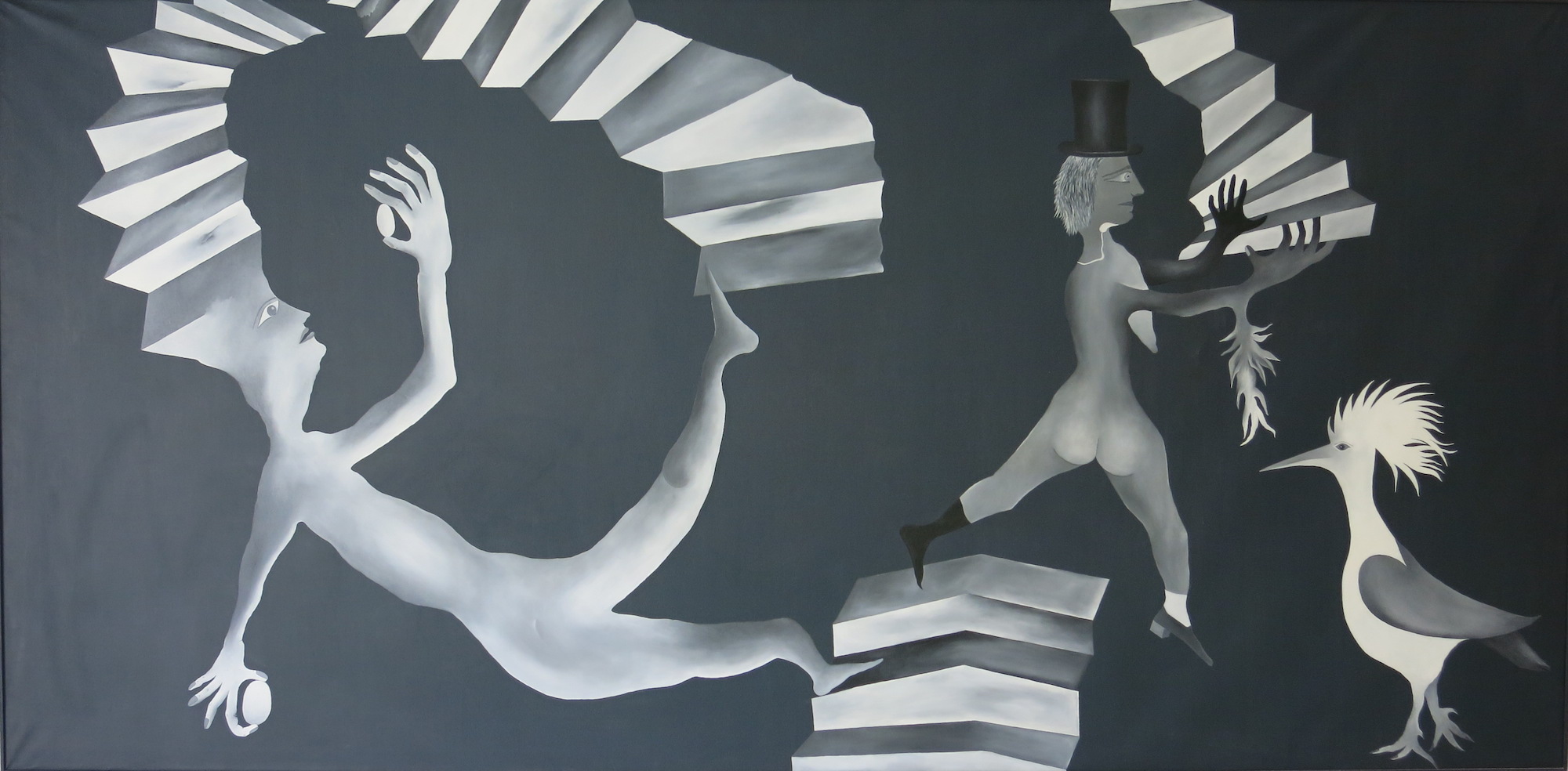 Oli sobre tela, mides 210 x 420cm , mides amb marc 212 x 422 cm.