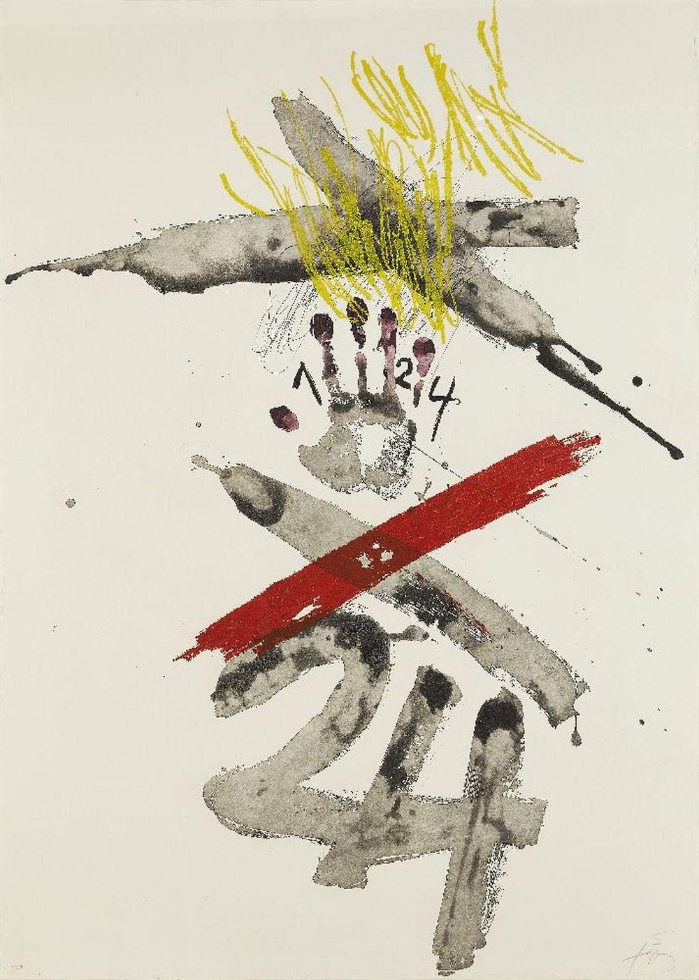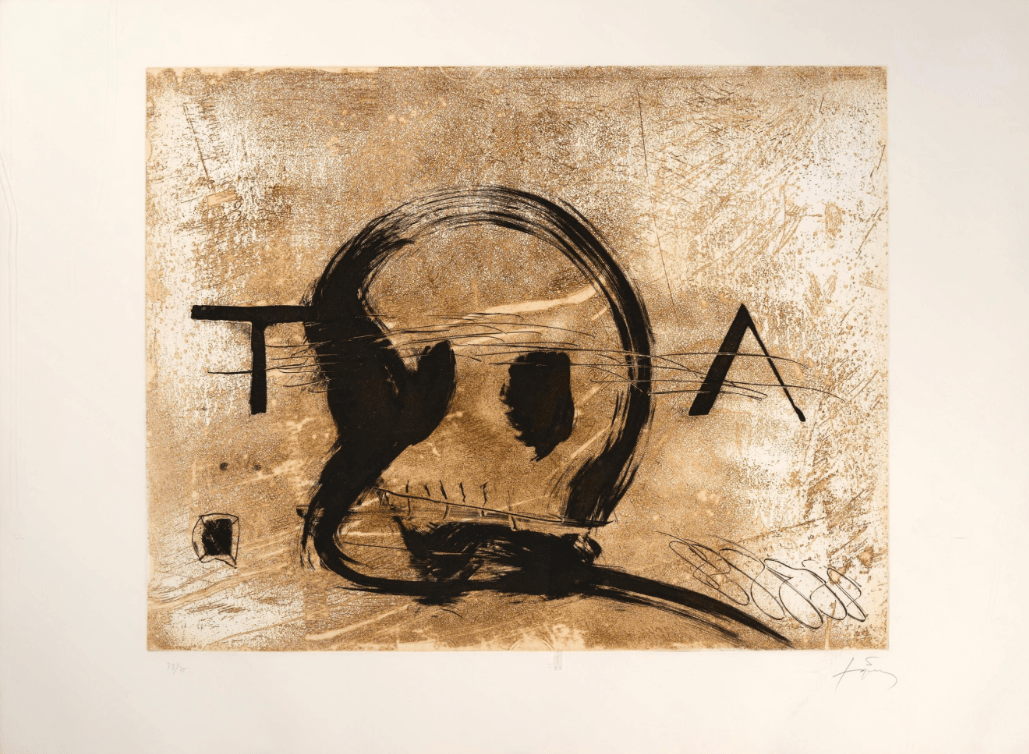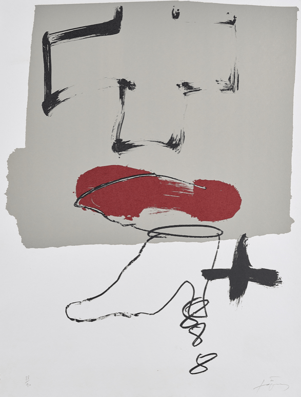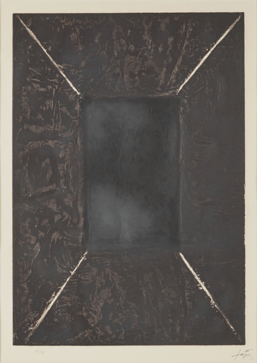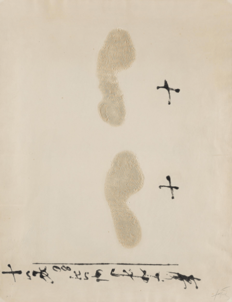 Paral·lelament a la producció pictòrica i objectual, Tàpies ha anat desenvolupant des de 1947 una activitat intensa en el camp de l’obra gràfica. En aquest sentit convé destacar que l’artista ha realitzat un gran nombre de llibres de bibliòfil i carpetes en estreta col·laboració amb poetes i escriptors com Alberti, Bonnefoy, Du Bouchet, Brodsky, Brossa, Daive, Dupin, Foix, Frémon, Gimferrer, Guillén, Jabès, Mestres Quadreny, Mitscherlich, Paz, Saramago, Takiguchi, Ullán, Valente i Zambrano, entre d’altres.