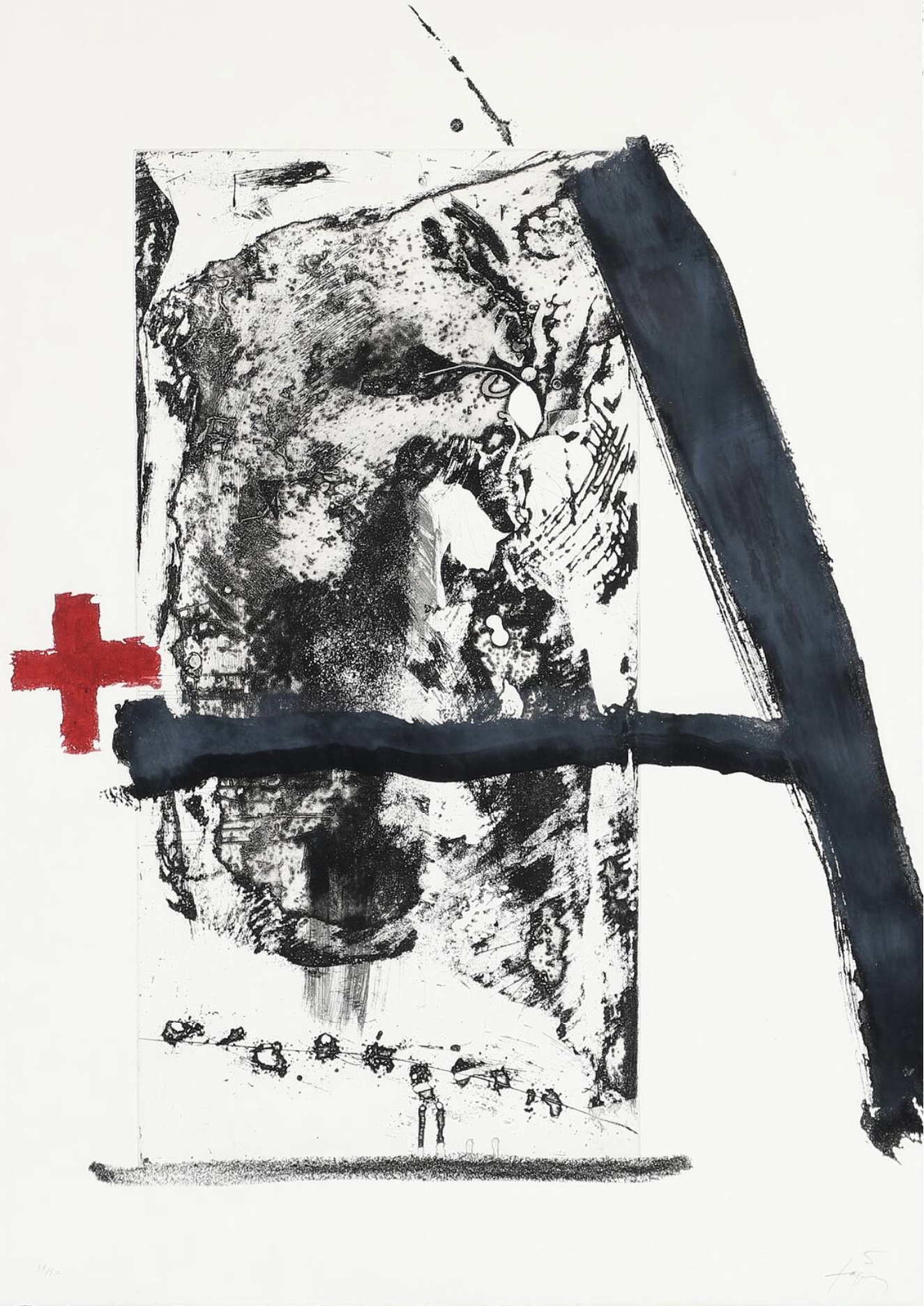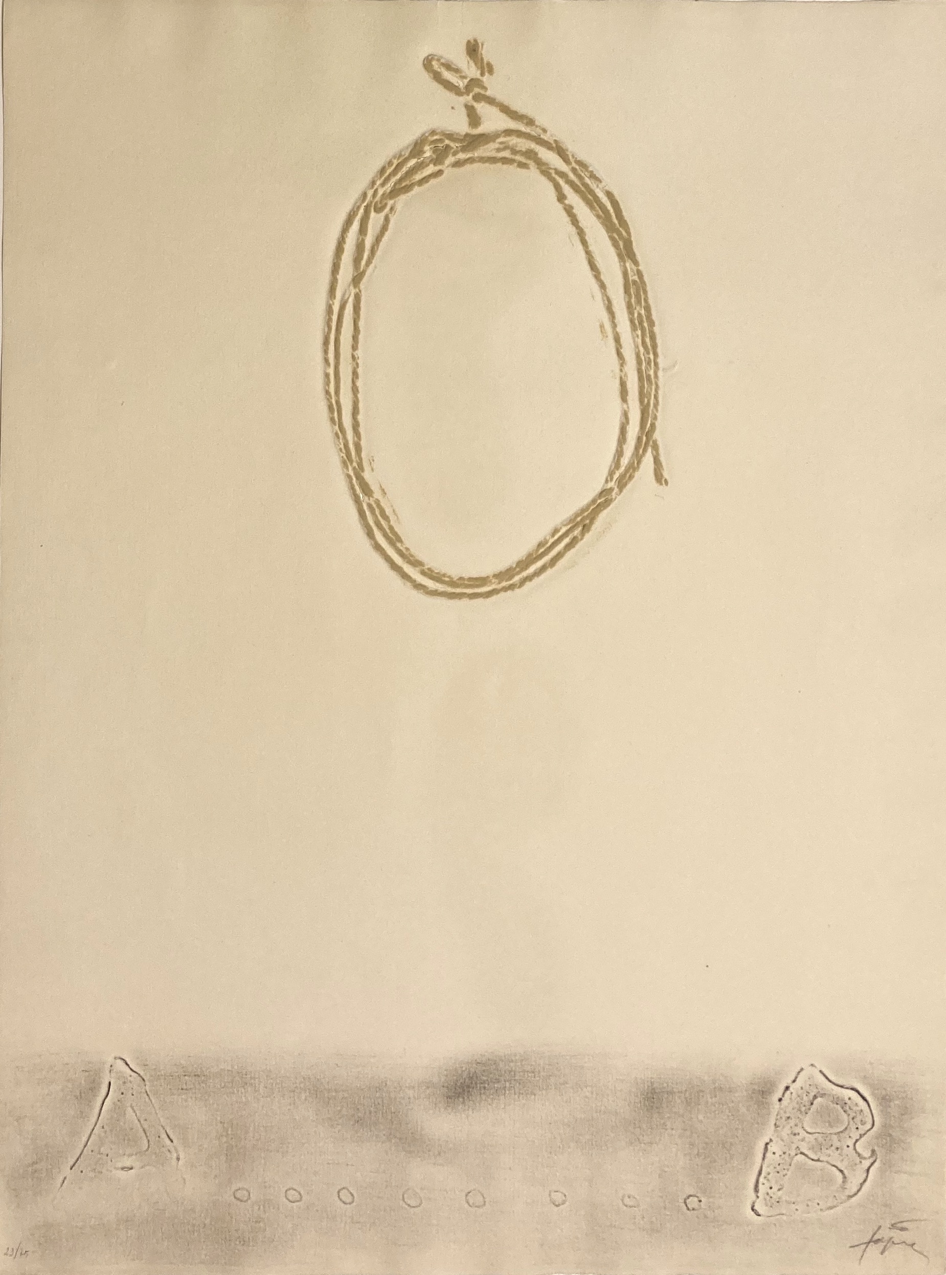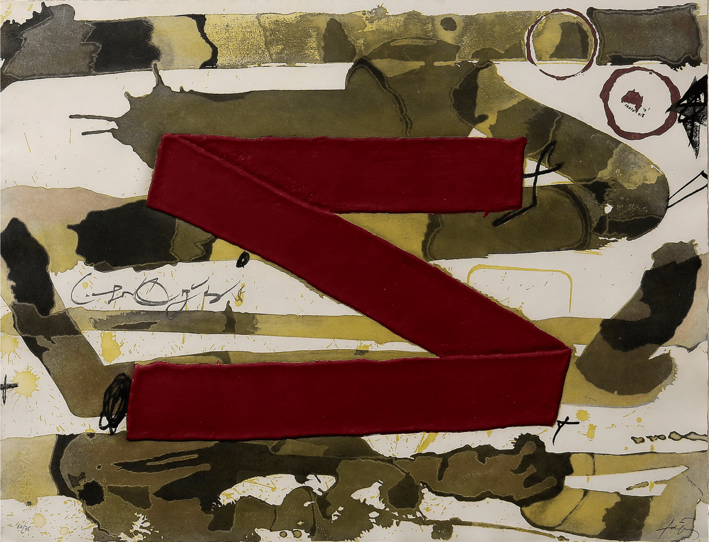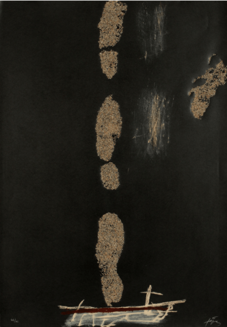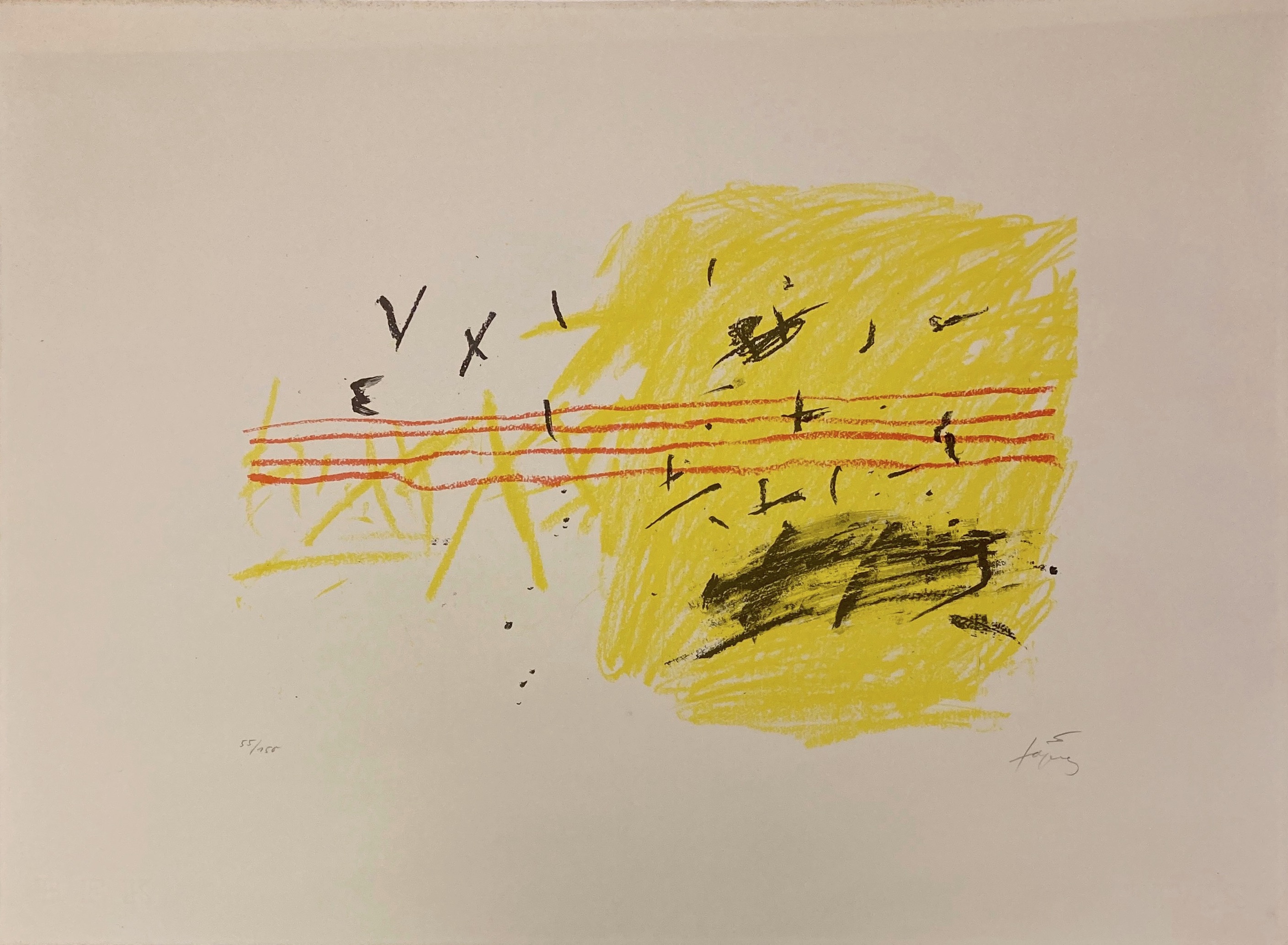 Paral·lelament a la producció pictòrica i objectual, Tàpies ha anat desenvolupant des de 1947 una activitat intensa en el camp de l’obra gràfica. En aquest sentit convé destacar que l’artista ha realitzat un gran nombre de llibres de bibliòfil i carpetes en estreta col·laboració amb poetes i escriptors com Alberti, Bonnefoy, Du Bouchet, Brodsky, Brossa, Daive, Dupin, Foix, Frémon, Gimferrer, Guillén, Jabès, Mestres Quadreny, Mitscherlich, Paz, Saramago, Takiguchi, Ullán, Valente i Zambrano, entre d’altres.