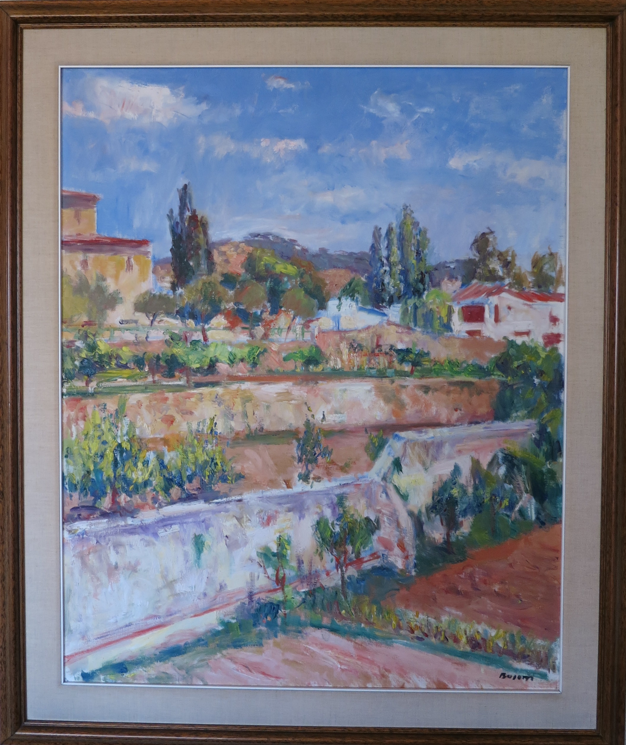 busom simo Simó Busom va néixer a Barcelona l’11 de juny de 1927. Als 14 anys tingué el seu primer contacte amb la pintura, a l’Acadèmia Baixas, on aprengué dibuix lineal i artístic. Aviat trobà feina com a delineant a la Casa Guardiola i passà per altres empreses, on féu amistat amb Francesc Folch, amb qui començà a aprendre d’estils artístics i a estimar l’obra dels pintors italians renaixentistes. Poc abans d’anar a fer el servei militar, Busom es llançà a fer aquarel·les. Un cop acabat el servei militar començà a pintar i exposar amb els membres de l’Agrupació d’Aquarel·listes de Catalunya. L’any 1954 aconseguí un accèssit al premi Montcada de pintura, així com una menció honirífica en la convocatòria que havia organitzat l’Ajuntament de Barcelona al Palau de la Virreina per a nous artistes. Concurent al premi de gravats convocat per “Rosa Vera”, coneixé Josep Gudiol, trobada de la qual sortí l’exposició de pintures i aiguaforts celebrada per Busom el gener de 1955. En aquella exposició també va fer amistat amb Josep Roca-Sastre, amb qui compartí estudi uns anys i junt amb el qual conmençà a formar el seu concepte dela pintura. Durant aquells anys, Busom, que intentava combinar l’impressionisme amb el dramatisme de la pintura castellana que llavors es portava, assajà el constructivisme i s’apropà al cubime. Participà en diversos Salons d’octubre de les Laietanes i al museu d’Art Modern al Parc de la Ciutadella i exposà a l’Ateneu Barcelonès i a la Sala Jaimes. L’any 1960 conegué Rafael Benet, moment a partir del qual deixà el constructivisne i el post-cubisme per tormar a la figuració com a element bàsic d’expressió. El novembre d’aquell any exposà a París, a “Le club dels 4 vents” i no fou fins el 1963 que presentà, a la Sala Vayreda de Barcelona, aquesta nova manera de fer. El mateix any fou promotor del grup “Realidad Visual”, defensors de la pintura com a confluència de coneixement i sentiment. L’octubre de 1964 participà en la col·lectiva inaugural de temporada a la Sala Vayreda i al febrer de 1966 realitzà una exposició individual que segons la crítica establí el seu progrés com a pintor. Al juny d’aquell 1964, Busom exposà per primera vegada a la Sala Parés, moment a partir del qual entrà en el grup dels joves pintors de la Parés, on l’any 1970 féu la primera exposició individual, que des de llavors continua fent en aquesta sala gairebé cada dos anys.