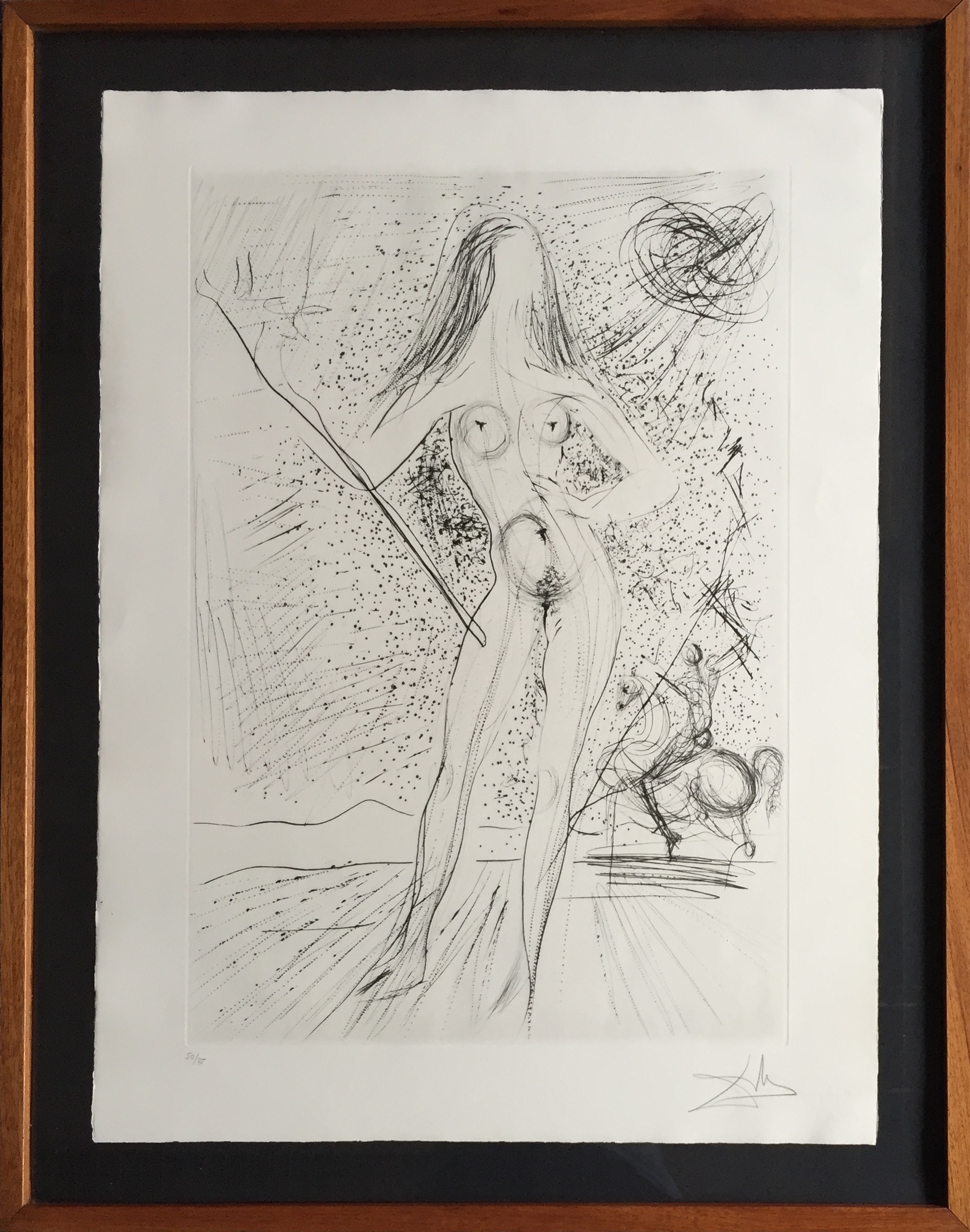 Aiguafort edició 50/70 , mides 75 x 56 cm , mides amb marc 88 x 69 cm. Reproduït en el libre » The Official Catalog of the Graphic Works of Salvador Dalí», de Albert Field.