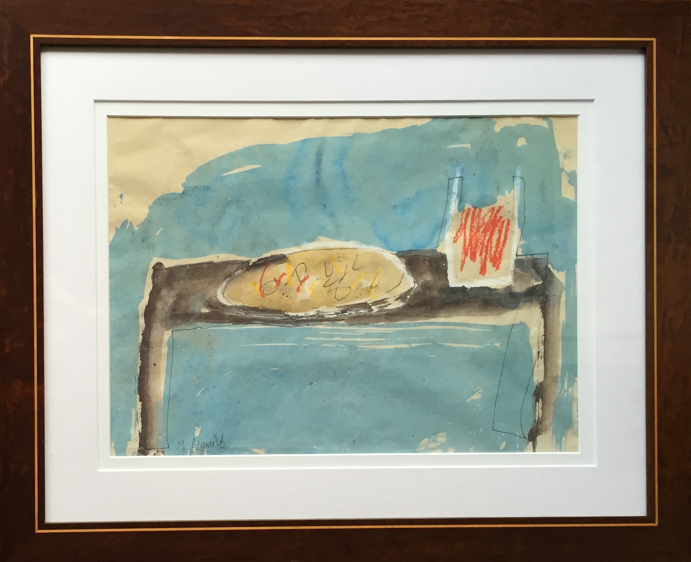 Pintura mixta sobre paper, mides 35 x 49 cm , mides amb marc 59 x 73 cm.