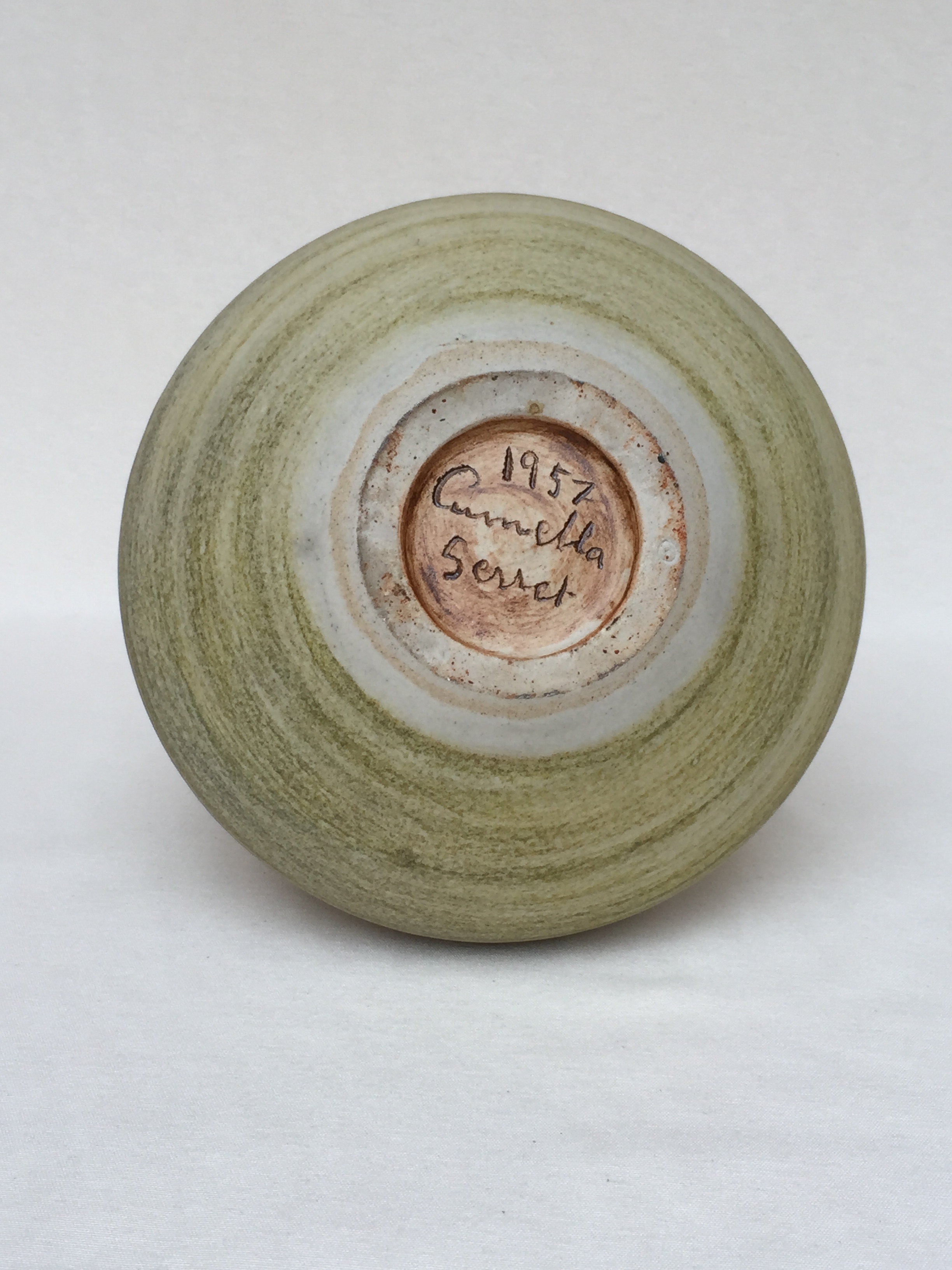 CUMELLA 2 Antoni Cumella Serret ( Granollers 1913-1985). Su padre, que era joyero, murió cuando él tenía tres años. Cuando tenía siete años su madre se casó con Josep Regàs, alfarero, que le enseña este arte en un principio. Con 15 años participa en su primera exposición colectiva en los locales de l’Unió Liberal de Granollers. La exposición universal de Barcelona en 1929 le permite conocer el trabajo escultórico presentado, especialmente el del alemán Mies van der Rohe y las obras de Manolo Hugué. Realiza estudios nocturnos de cerámica en l’Escola del Treball deBarcelona donde conoce la obra de Gaudí. Desde 1935 es profesor de cerámica en el Grup Escolar Lluís Vives de Barcelona. En esa época conoce a Pau Casals,Manolo Hugué, Miquel Llor y Josep Llorens i Artigas con quienes mantendrá una gran amistad. Durante la guerra civil sirve como sanitario, siendo encarcelado hasta 1940 y no pudo recuperar su pasaporte hasta 1952. Expone en la Biblioteca Popular de Granollers (1932) y participa en tres ediciones consecutivas de la Exposició de Primavera de Barcelona (1933, 1934 y 1935), pero hasta 1936 no realiza su primera exposición personal en Barcelona, en las galerías Syra, dónde continúo exponiendo en los años posteriores a la guerra: 1941, 1942, 1951, 1954, 1956 y 1958. En 1936 participa en la VI Trienal de Milán donde obtiene la Medalla de Oro, obteniéndolo nuevamente en 1951 y 1957. En 1959 junto a Cirici y Romà Vallès, en una iniciativa pionera en España respecto a los estudios de diseño, fundan la Escuela de Arte del FAD (Fomento de las Artes Decorativas). En 1980 se le concede el Premio Nacional de Artes Plásticas. En 1982 le son otorgadas la Creu de Sant Jordi y la Medalla de Oro del FAD, y es nombrado Hijo Predilecto de la Ciudad de Granollers. En 1984 realiza la Medalla del Parlamento de Cataluña.