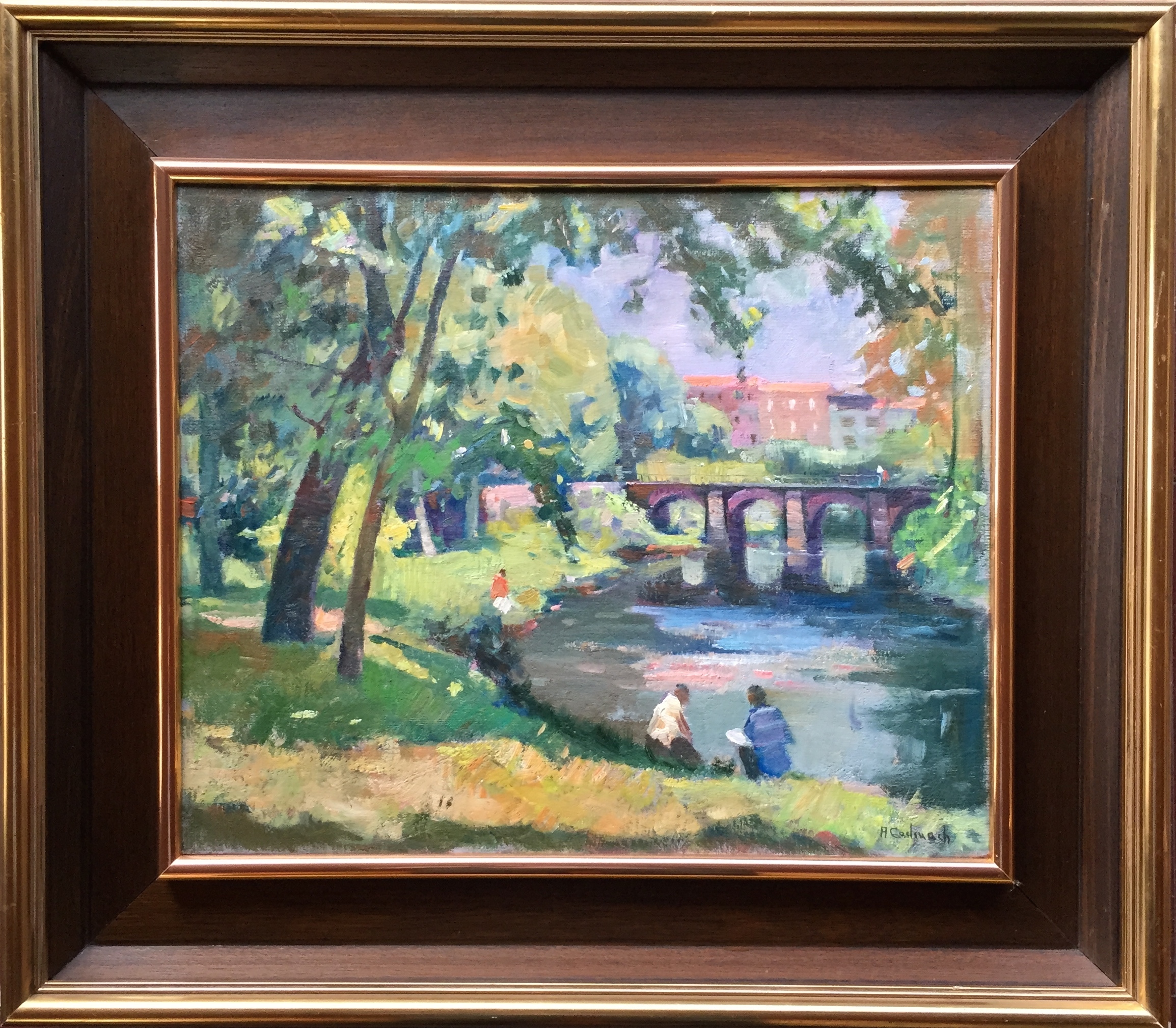 Ángel Codinach Campllonch nació en Olot el 11 de febrero de 1922 y murió el 21 de julio de 1995 en Girona. La vocación por la pintura de Ángel Codinach se manifestó ya en su infancia. Sus inicios artísticos, siempre difíciles, se apoyaron con la ayuda de su padre, gran amante de la escultura y tallista aficionado, el cual, desgraciadamente, moriría muy pronto. Este hecho, acontecido cuando Codinach sólo tenía trece años, condicionaría decisivamente su futura trayectoria personal y artística. Durante cuatro años se formó en la Escola de Belles Arts d’Olot, donde estudió dibujo y pintura bajo la dirección de los artistas Melchor Domenge, Martí Casadevall, Pere Gussinyé y el escultor Abel Ferrarons entre otros. A principios de los años 50 formó parte del grupo Cráter d’ Art y Grup de Pintors d’Olot impulsado y dirigido por Josep Mir y Mas de Xerás, con el Dr. Candi Agustí, etc. Se trataba de un núcleo compuesto por más de treinta artistas plásticos, de muy diversas tendencias, que aspiraban a una renovación de la orientación tradicional del arte olotino. No renegaban del glorioso pasado artístico de la capital de la Garrotxas, pero lo entendían como una lección ya asumida. El grupo lo integraban diversos pintores, entre los cuales, a parte del mismo Codinach, estaban Rafael Griera, Joan Clapera i Maya, los ya desaparecidos Frederic Comelles, Josep Mª Vayreda Canadell, Danés Jordi, etc. Habitaban como local permanente una parte del bar La casa del Moro y expusieron regularmente en el Principado. En Barcelona lo hicieron concretamente los años 1954 y 1956. El 1954 fue también el de la presentación de Àngel Codinach, que tuvo lugar en la Sala Armengol, de su ciudad natal. Posteriormente fue miembro del grupo Pintors d’ Olot, con Griera, Bataller, Corriols, Gómez y otros, exponiendo con ellos en diversas poblaciones de las comarcas catalanas, en Barcelona, Valencia y Bilbao a principios de los años 60. En viajes patrocinados por la Galería Mundi Art, de Barcelona, visitó diversas ciudades de Castilla y León entre 1971 y 1972. Hombre trabajador y que no concibe que en el arte existan elementos competitivos, no ha querido, en ningún momento de su carrera, participar en concursos. Recientemente le ha sido concedidala Medalla d’Argent del Ayuntamiento de El Prat de Llobregat. Tal y como ha remarcado Lina Font, Ángel Codinach es un paisajista que insertado en las corrientes conceptuales del postimpresionismo, se caracteriza por la agilidad de la digitación, la fluidez de los empastes y el claro entendimiento y original enfoque del tema. Por su lenguaje expresivo se vale de una amplia gama cromática de tonos brillantes, armonizada con sensibles matizaciones que logra por sobreposición del pigmento. Conocida y reconocida su categoría dentro del círculo pictórico, empieza a ser relanzado por personas entusiastas de su obra que con una dedicación casi absoluta consiguen introducirlo en casi todo el mundo. Actualmente de una manera discreta pero continuada la obra de nuestra amigo Ángel es posible disfrutarla en treinta y cinco países diferentes y en sitios tan distantes y de grandes diferencias culturales como para poder decir con toda seguridad que Ángel Codinach es un artista de renombre mundial. El tiempo y no nosotros nos dará sin duda la razón.