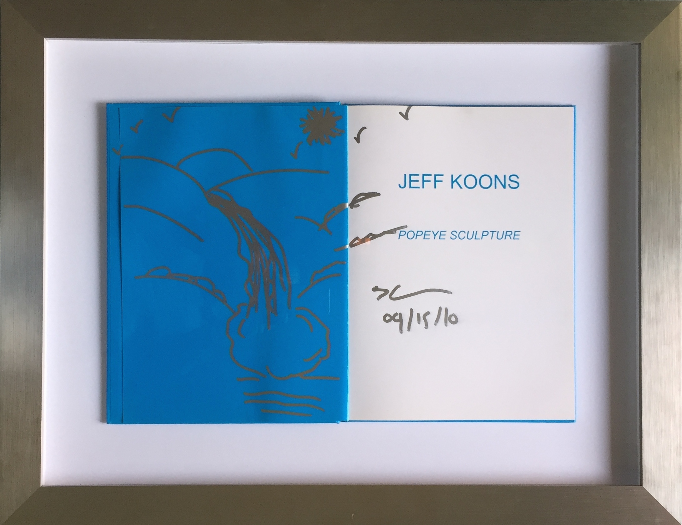 Tinta sobre pagina del llibre Popeye Sculptue, mides llibre 33 x 21,3 cm , mides llibre obert 33 x 46,5 cm. Mides amb marc 53,5 x 69 cm.