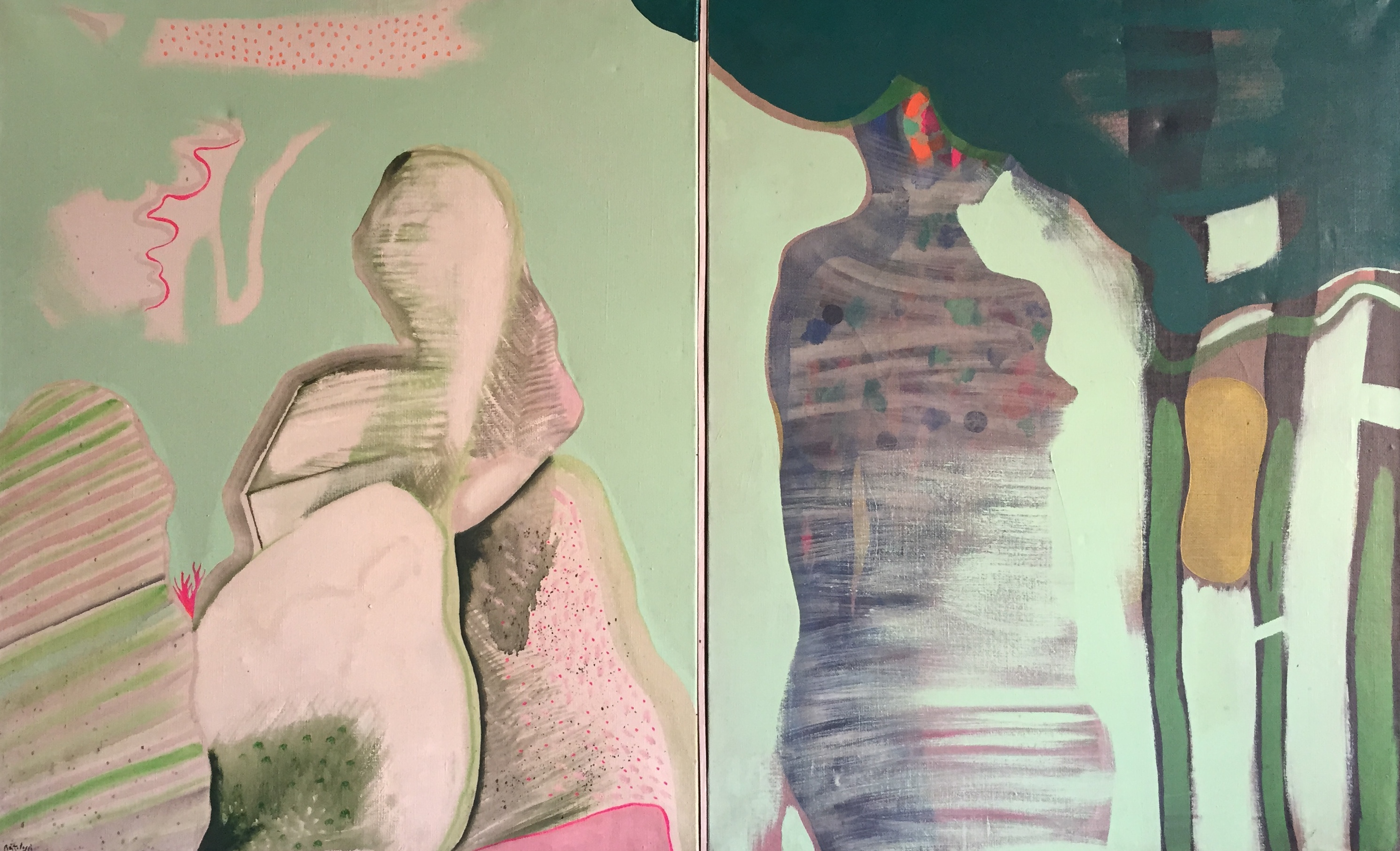 Oli sobre tela, diptic , mides 80,5 x 65 cm x 2 olis, mides amb marc 82 x 132 cm.