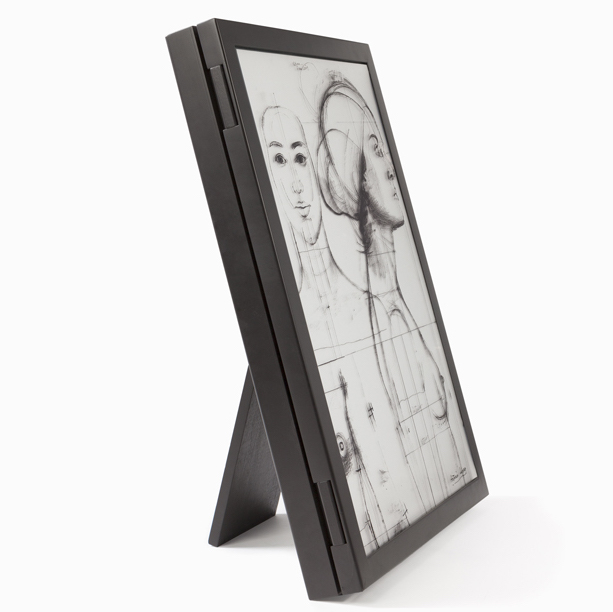 Estoig de fusta i vidre, serigrafiat a 2 tintes, per el libre «Cuerpos y Flores», mides 77 x 54,4 x 8 cm.