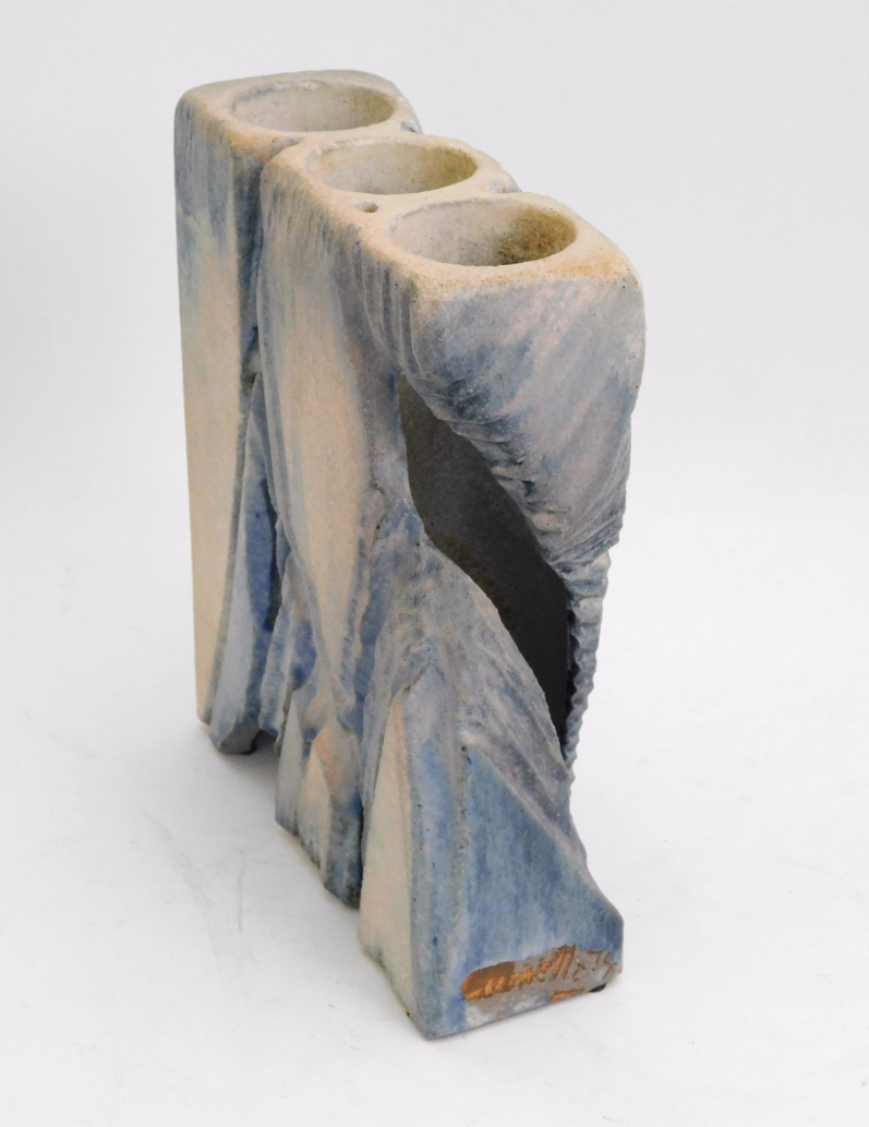 Antoni Cumella Serret ( Granollers 1913-1985). Su padre, que era joyero, murió cuando él tenía tres años. Cuando tenía siete años su madre se casó con Josep Regàs, alfarero, que le enseña este arte en un principio. Con 15 años participa en su primera exposición colectiva en los locales de l’Unió Liberal de Granollers. La exposición universal de Barcelona en 1929 le permite conocer el trabajo escultórico presentado, especialmente el del alemán Mies van der Rohe y las obras de Manolo Hugué. Realiza estudios nocturnos de cerámica en l’Escola del Treball deBarcelona donde conoce la obra de Gaudí. Desde 1935 es profesor de cerámica en el Grup Escolar Lluís Vives de Barcelona. En esa época conoce a Pau Casals,Manolo Hugué, Miquel Llor y Josep Llorens i Artigas con quienes mantendrá una gran amistad. Durante la guerra civil sirve como sanitario, siendo encarcelado hasta 1940 y no pudo recuperar su pasaporte hasta 1952. Expone en la Biblioteca Popular de Granollers (1932) y participa en tres ediciones consecutivas de la Exposició de Primavera de Barcelona (1933, 1934 y 1935), pero hasta 1936 no realiza su primera exposición personal en Barcelona, en las galerías Syra, dónde continúo exponiendo en los años posteriores a la guerra: 1941, 1942, 1951, 1954, 1956 y 1958. En 1936 participa en la VI Trienal de Milán donde obtiene la Medalla de Oro, obteniéndolo nuevamente en 1951 y 1957. En 1959 junto a Cirici y Romà Vallès, en una iniciativa pionera en España respecto a los estudios de diseño, fundan la Escuela de Arte del FAD (Fomento de las Artes Decorativas). En 1980 se le concede el Premio Nacional de Artes Plásticas. En 1982 le son otorgadas la Creu de Sant Jordi y la Medalla de Oro del FAD, y es nombrado Hijo Predilecto de la Ciudad de Granollers. En 1984 realiza la Medalla del Parlamento de Cataluña.