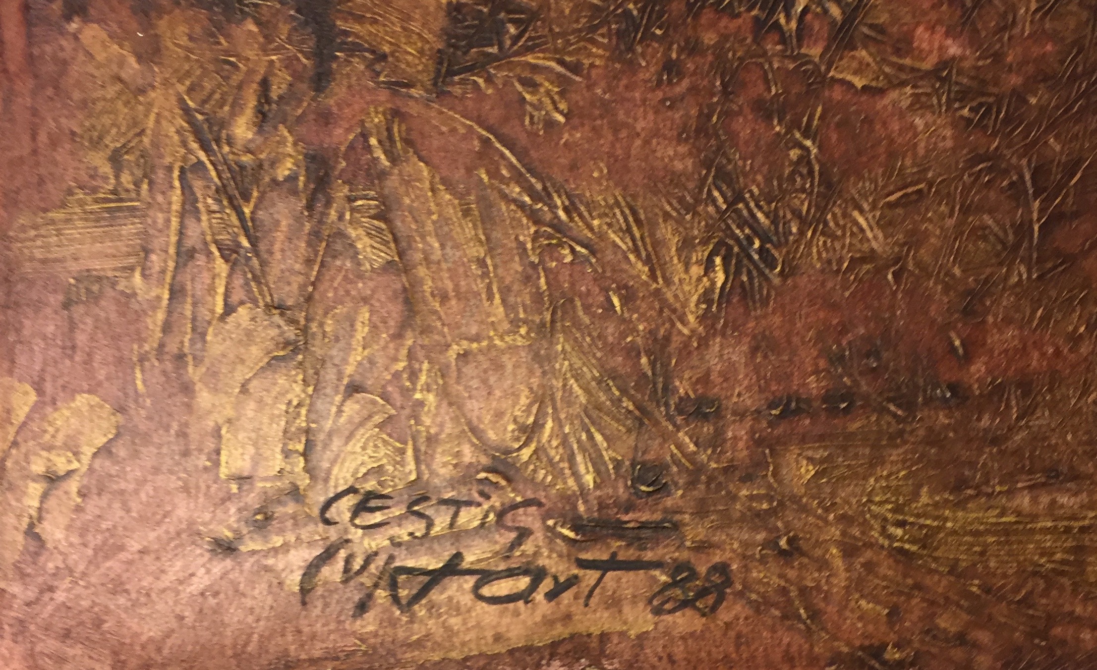 Tècnica mixta sobre cartro, mides 64 x 50 cm , mides amb marc 86 x 72 cm.