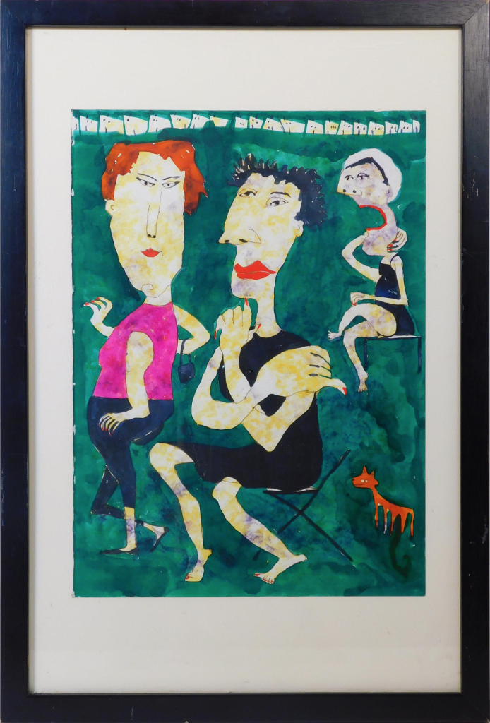 sabala 6 Elisabeth Sabala Abelló (Barcelona, 1956).Cursó estudios de diseño industrial en la Escuela de Artes y Oficios de Barcelona, y es licenciada en Bellas Artes, especialidad de pintura, por la Universidad Central de la misma ciudad. Sabala es una figurativista convencida que le ha otorgado todo el protagonismo de su obra a la representación del ser humano en sus aspectos más triviales. En un momento en el que el panorama artístico ensalza el arte abstracto y conceptual concentrado en los grandes temas universales, Sabala sigue concentrándose en los pequeños defectos que nos acercan a lo colectivo y a lo humano. La progresión artística de Sabala transcurre, en un primer momento, de un periodo sombrío a otro vitalista y, más adelante, de la representación de personajes aislados (En el súper, Leyendo las historias de las historias de los cuadros) a la recreación de grandes concentraciones de sus peculiares individuos caracterizados en un sin fin de situaciones (El gran baile, Las Chicas del Coro). La obra de Sabala es vital y enternecedora, a la vez que mordaz y satírica: confronta a sus personajes en las más variadas situaciones captando, al mismo tiempo, la atención del espectador con una inusual yuxtaposición de colores que no busca armonía cromática, sino expresión y movimiento a través de la materia. En 1980 obtuvo el primer premio de pintura del Ayuntamiento de Castelldefells, y al año siguiente debutó individualmente en la sala de Caixa Catalunya, en Barcelona. En 1984 fue seleccionada para el XXIII Premio de Dibujo Joan Miró, tomando parte en una muestra itinerante por Japón. Obtuvo el primer premio del Certamen Internacional de Pintura de Pollença (Mallorca) en 1985, y al año siguiente tomó parte en una colectiva celebrada en la galería Martano de Turín. Ese mismo año de 1986 obtiene la Beca de Artes Plásticas de la Generalitat de Catalunya. Sigue celebrando muestras personales en Barcelona, Mallorca, Madrid e Italia, y en 1989 debuta en Nueva York con una exposición individual celebrada en la Scott Alan Gallery. Desde entonces reiterará su presencia tanto en dicha ciudad como en París, Berlín, Mónaco, Ámsterdam, Los Ángeles, México D.F., Hong Kong, etc. Sus obras han estado presentes en Interarte, ARCO, Art Forum, Art Jonction y New Art, así como en diversos museos españoles.