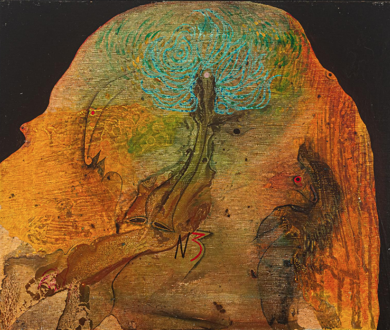Modest Cuixart i Tàpies (Barcelona, 1925 – Palafrugell, Girona, 2007) ,estudió inicialmente medicina, pero pronto abandona sus estudios para dedicarse a la pintura, e ingresa en la Academia Libre de Pintura de Barcelona. En 1948 participa en la fundación del grupo Dau al Set, junto con Brossa, Ponç, Tàpies y Tharrats, entre otros. Preocupado por el valor plástico del signo, su obra tiene desde el principio un fuerte parentesco con el surrealismo, así como una gran sensibilidad hacia la fuerza expresiva del color. Hacia 1955 se sumerge en el informalismo matérico, que le llevará a utilizar el “grattage” en obras de cierto regusto orientalizante. En 1959 gana el primer premio de la Bienal de São Paulo y expone en la Documenta de Kassel, y al año siguiente participa en una exposición de vanguardia española celebrada en la Tate Gallery de Londres y en el Museo Guggenheim de Nueva York. Cuixart introduce en su obra el collage en 1962, lo que le llevará poco a poco hacia el pop-art. Enriquecido por todas estas experiencias, vuelve de nuevo a la pintura plana, alcanzando un realismo crítico muy personal, que sintetiza el expresionismo con la figuración dramáticamente transformada, siempre valorando las cualidades cromáticas. En los años setenta expone en numerosas capitales nacionales e internacionales, como París, Madrid, São Paulo, Ámsterdam, Tokio, Basilea, Barcelona y Milán, entre otras. En la década siguiente, Cuixart va liberando a su pintura de los aspectos agresivos para darle un tono más lírico. Además, participa en una exposición colectiva en el Palacio de la UNESCO de París, recibe la Cruz de San Jorge de la Generalitat de Cataluña, y la Cruz de Isabel la Católica. En 1988 realiza una exposición antológica en Japón, en las ciudades de Kobe y Tokio. Continúa trabajando con colores y formas exuberantes, y reincorpora a su obra una figuración más matérica. En 1998 se crea la fundación que lleva su nombre en Palafrugell, y al año siguiente se le concede la Medalla de Oro al mérito en las Bellas Artes del Ministerio de Cultura. Está representado en el Museo Nacional Centro de Arte Reina Sofía, la Tate Gallery de Londres, el Nacional de Arte de Cataluña, los de Arte Contemporáneo de Madrid, Barcelona y Saint-Etienne (Francia), el Patio Herreriano de Valladolid, el de Grabado Español Contemporáneo de Marbella, el de Arte de la Universidad de São Paulo, el de Arte Abstracto de Cuenca y el del Ampurdán, entre muchos otros.