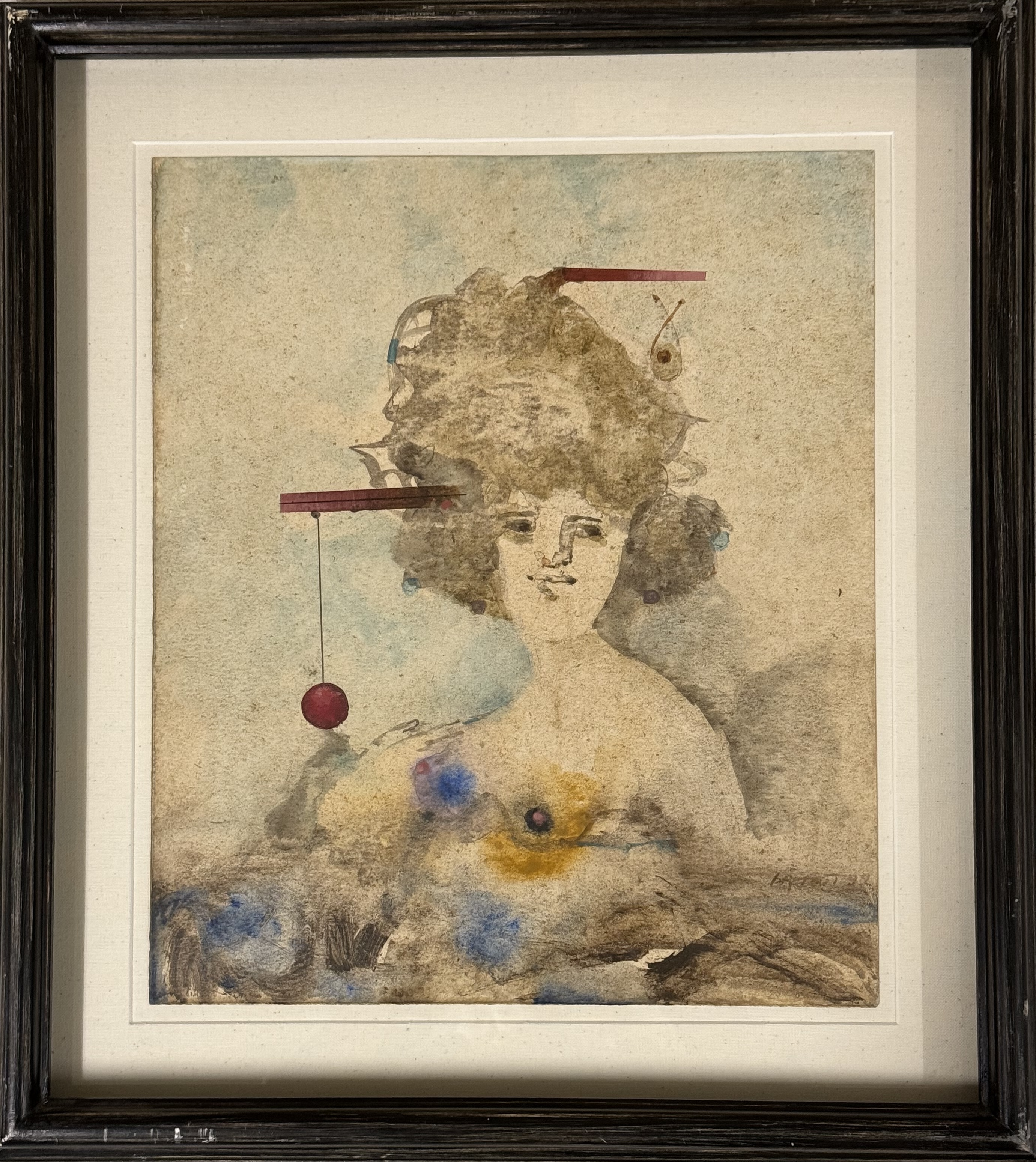 Tecnica mixta sobre paper, mides 45 x 38 cm , mides amb marc 61 x 55cm.