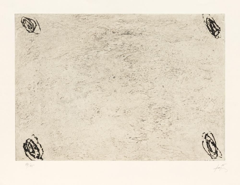 Antoni Tàpies neix a Barcelona el 1923 en el si d’una família burgesa, culta i catalanista, immersa des de mitjan segle XIX en una tradició editorial i llibretera que ben aviat desperta en l’artista un amor pels llibres i la lectura. Aquesta predisposició es veu accentuada en la llarga convalescència d’una malaltia pulmonar, durant la qual inicia els seus tempteigs artístics. Progressivament es dedica amb més intensitat al dibuix i a la pintura, i acaba deixant els seus estudis de dret per dedicar-s’hi plenament. En la dècada dels anys quaranta ja exposa les seves obres, les quals destaquen en la panoràmica artística del moment. Partícip d’una sensibilitat generalitzada que afecta els artistes d’ambdues bandes de l’Atlàntic arran de la Segona Guerra Mundial i el llançament de la bomba atòmica, Antoni Tàpies expressa des de ben aviat un interès per la matèria, la terra, la pols, els àtoms i les partícules, que es plasma formalment en l’ús de materials aliens a l’expressió plàstica academicista i en l’experimentació de noves tècniques. Les pintures matèriques formen una part substancial de l’obra de Tàpies i constitueixen un projecte que es continua desenvolupant avui dia. Tàpies creu que la noció de matèria s’ha d’entendre també des de la perspectiva del misticisme medieval com a màgia, mimesi i alquímia. És en aquest sentit que hem de comprendre el desig de l’artista que les seves obres tinguin el poder de transformar el nostre interior. Durant els anys cinquanta i seixanta Antoni Tàpies anirà elaborant un seguit d’imatges, generalment extretes del seu entorn immediat, que apareixeran en les diferents etapes de la seva evolució. Sovint, una mateixa imatge, a més de ser representada de diverses maneres, tindrà una sèrie de significacions diferenciades que s’aniran superposant. El seu missatge se centra en la revaloració del que es considera baix, repulsiu, material (no és en va que Tàpies escull sovint temes tradicionalment tinguts per desagradables i fetitxistes, com poden ser un anus defecant, una sabata abandonada, una aixella, un peu i d’altres). Així mateix, l’obra d’Antoni Tàpies ha estat sempre permeable als esdeveniments polítics i socials del moment. A finals dels anys seixanta i començament dels setanta, el seu compromís polític contra la dictadura s’intensifica, i les obres d’aquest període tenen un marcat caràcter de denúncia i de protesta. Coincidint amb l’eclosió de l’arte povera a Europa i el postminimalisme als EUA, Tàpies accentua el seu treball amb objectes, no mostrant-los tal com són, sinó imprimint-los el seu segell i incorporant-los al seu llenguatge. A principis dels anys vuitanta, un cop restaurat l’Estat de dret a Espanya, l’interès de Tàpies per la tela com a suport adquireix una força renovada. Durant aquests anys, realitza obres amb goma-escuma o amb la tècnica de l’esprai, utilitza vernissos i crea objectes i escultures de terra xamotada o de bronze, alhora que es manté molt actiu en el camp de l’obra gràfica. D’altra banda, a finals dels anys vuitanta sembla que es reforça l’interès de Tàpies per la cultura oriental, una preocupació que ja s’havia anat gestant des dels anys de la postguerra i que esdevé, cada vegada més, una influència filosòfica fonamental en la seva obra pel seu èmfasi en el que és material, per la identitat entre home i natura i per la negació del dualisme de la nostra societat. Igualment, Tàpies se sent atret per una nova generació de científics, els quals contribueixen a donar una visió de l’univers que entén la matèria com un tot en un canvi i formació constants. Les obres dels darrers anys constitueixen, sobretot, una reflexió sobre el dolor -tant físic com espiritual- entès com a part integrant de la vida. Influït pel pensament budista, Tàpies considera que un major coneixement del dolor permet fer més dolços els seus efectes i, per tant, millorar la qualitat de vida. El pas del temps, que sempre ha estat una constant en l’obra de Tàpies, adquireix ara nous matisos en viure’s com una experiència personal que comporta un millor autoconeixement i una comprensió més clara del món que l’envolta. Durant aquests darrers anys, Antoni Tàpies ha consolidat un llenguatge artístic que tradueix plàsticament, d’una banda, la seva concepció de l’art i, de l’altra, unes preocupacions filosòfiques renovellades amb el pas del temps. La seva pràctica artística continua permeable a la brutalitat del present, a la vegada que ofereix una forma que, tot i la seva ductilitat, roman fidel als seus orígens. En aquest sentit, les obres dels últims anys no tan sols s’inscriuen en la contemporaneïtat, sinó que també són un registre del propi passat de l’artista. Paral·lelament a la producció pictòrica i objectual, Tàpies ha anat desenvolupant des de 1947 una activitat intensa en el camp de l’obra gràfica. En aquest sentit convé destacar que l’artista ha realitzat un gran nombre de llibres de bibliòfil i carpetes en estreta col·laboració amb poetes i escriptors com Alberti, Bonnefoy, Du Bouchet, Brodsky, Brossa, Daive, Dupin, Foix, Frémon, Gimferrer, Guillén, Jabès, Mestres Quadreny, Mitscherlich, Paz, Saramago, Takiguchi, Ullán, Valente i Zambrano, entre d’altres. Així mateix, Antoni Tàpies ha desenvolupat una tasca d’assagista que ha donat lloc a una sèrie de publicacions, algunes traduïdes a diversos idiomes: La pràctica de l’art (1970), L’art contra l’estètica, (1974), Memòria personal (1978), La realitat com a art (1982), Per un art modern i progressista (1985), Valor de l’art (1993) i L’art i els seus llocs (1999).