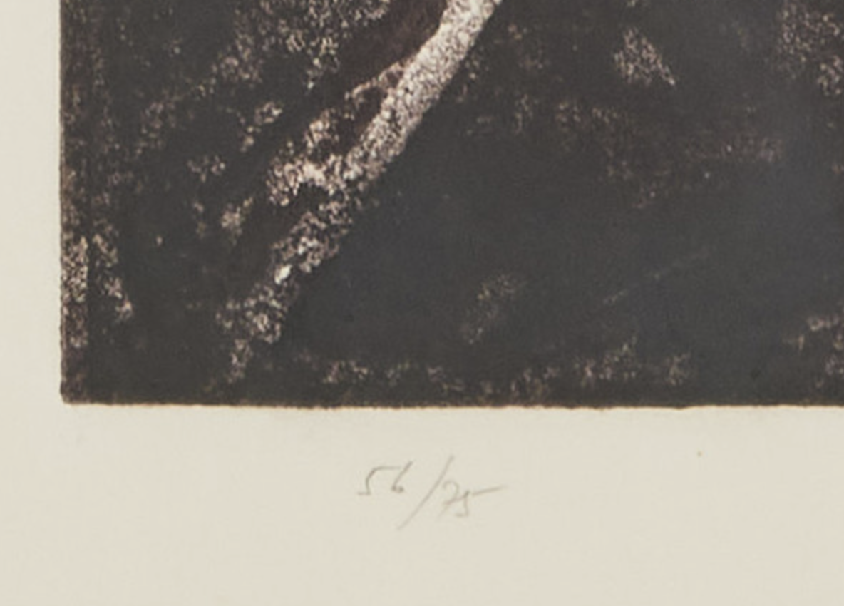 Aiguafort, sobre paper Chiffon de Mandeure, exemplar 56/75. Referencia Galfetti 190, mides 77,5 x 58 cm.
