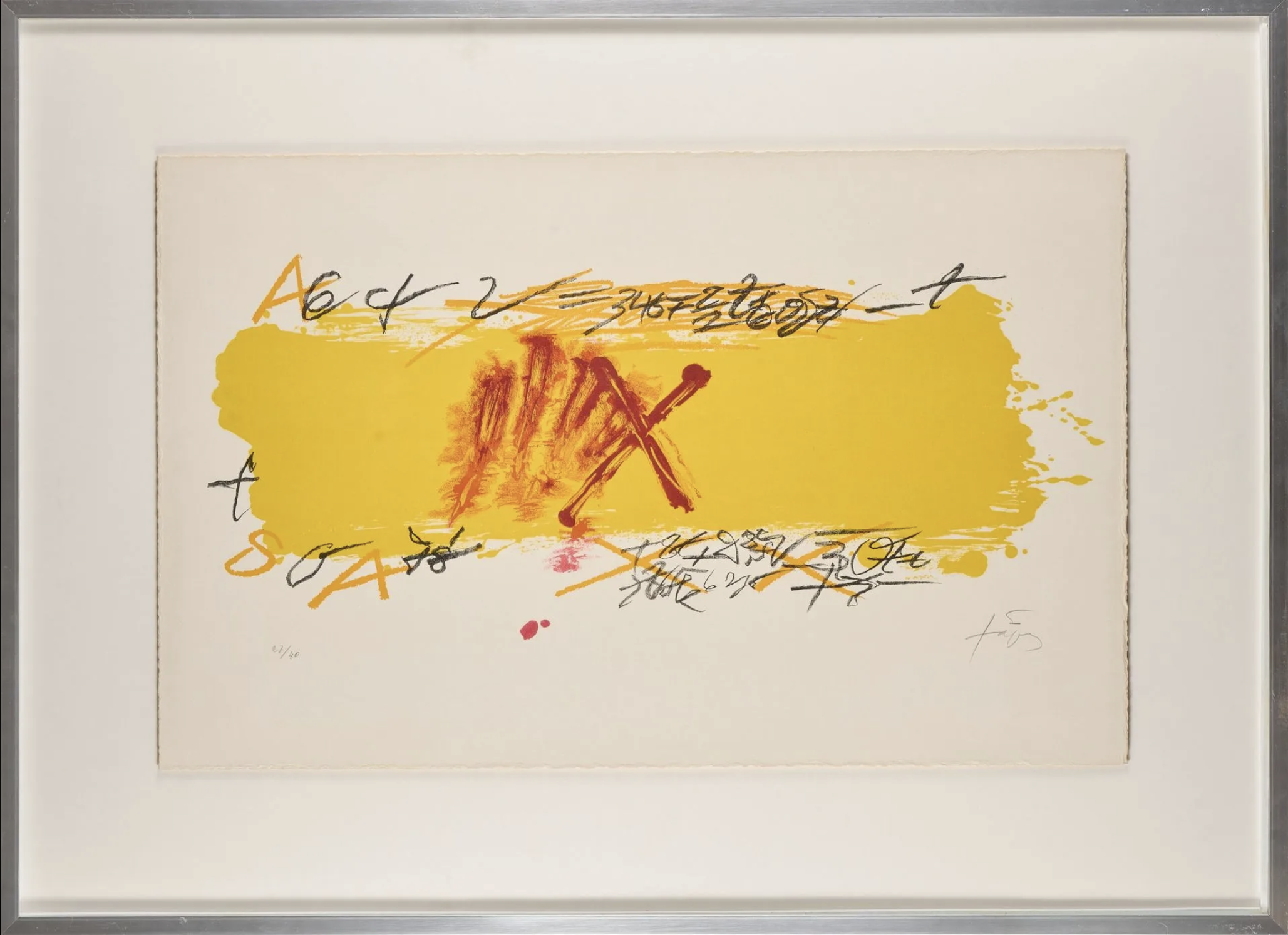 Litografía, sobre paper filigrana CM Fabriano cotone, exemplar 27/40. Referencia Galfetti 735, mides 43,5 x 68 cm, mides amb marc 66  x  91 cm.