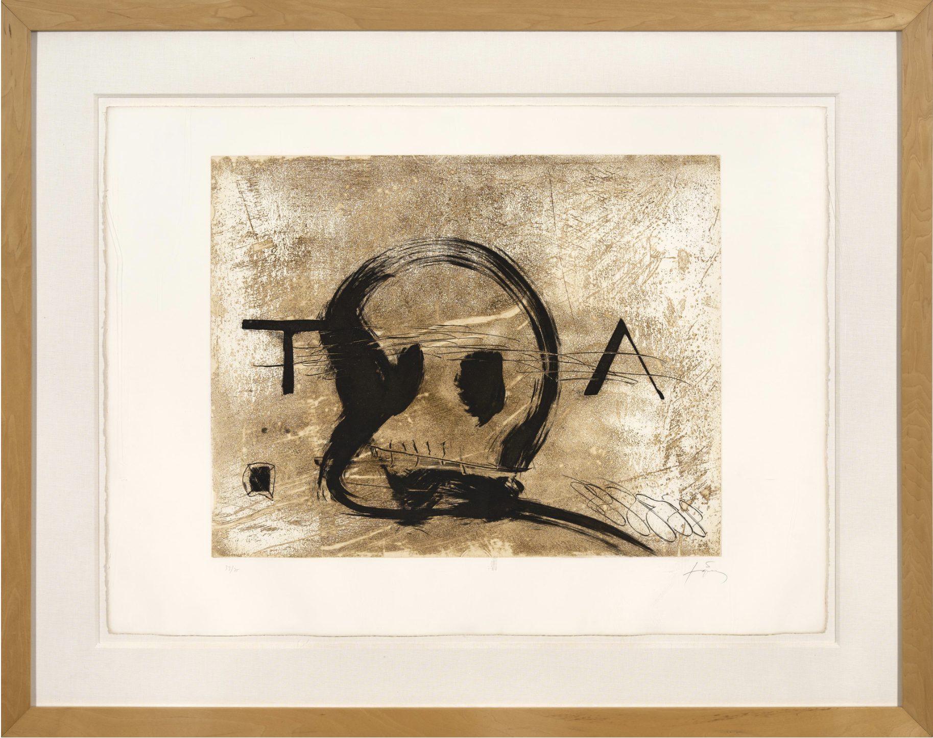 Antoni Tàpies neix a Barcelona el 1923 en el si d’una família burgesa, culta i catalanista, immersa des de mitjan segle XIX en una tradició editorial i llibretera que ben aviat desperta en l’artista un amor pels llibres i la lectura. Aquesta predisposició es veu accentuada en la llarga convalescència d’una malaltia pulmonar, durant la qual inicia els seus tempteigs artístics. Progressivament es dedica amb més intensitat al dibuix i a la pintura, i acaba deixant els seus estudis de dret per dedicar-s’hi plenament. En la dècada dels anys quaranta ja exposa les seves obres, les quals destaquen en la panoràmica artística del moment. Partícip d’una sensibilitat generalitzada que afecta els artistes d’ambdues bandes de l’Atlàntic arran de la Segona Guerra Mundial i el llançament de la bomba atòmica, Antoni Tàpies expressa des de ben aviat un interès per la matèria, la terra, la pols, els àtoms i les partícules, que es plasma formalment en l’ús de materials aliens a l’expressió plàstica academicista i en l’experimentació de noves tècniques. Les pintures matèriques formen una part substancial de l’obra de Tàpies i constitueixen un projecte que es continua desenvolupant avui dia. Tàpies creu que la noció de matèria s’ha d’entendre també des de la perspectiva del misticisme medieval com a màgia, mimesi i alquímia. És en aquest sentit que hem de comprendre el desig de l’artista que les seves obres tinguin el poder de transformar el nostre interior. Durant els anys cinquanta i seixanta Antoni Tàpies anirà elaborant un seguit d’imatges, generalment extretes del seu entorn immediat, que apareixeran en les diferents etapes de la seva evolució. Sovint, una mateixa imatge, a més de ser representada de diverses maneres, tindrà una sèrie de significacions diferenciades que s’aniran superposant. El seu missatge se centra en la revaloració del que es considera baix, repulsiu, material (no és en va que Tàpies escull sovint temes tradicionalment tinguts per desagradables i fetitxistes, com poden ser un anus defecant, una sabata abandonada, una aixella, un peu i d’altres). Així mateix, l’obra d’Antoni Tàpies ha estat sempre permeable als esdeveniments polítics i socials del moment. A finals dels anys seixanta i començament dels setanta, el seu compromís polític contra la dictadura s’intensifica, i les obres d’aquest període tenen un marcat caràcter de denúncia i de protesta. Coincidint amb l’eclosió de l’arte povera a Europa i el postminimalisme als EUA, Tàpies accentua el seu treball amb objectes, no mostrant-los tal com són, sinó imprimint-los el seu segell i incorporant-los al seu llenguatge. A principis dels anys vuitanta, un cop restaurat l’Estat de dret a Espanya, l’interès de Tàpies per la tela com a suport adquireix una força renovada. Durant aquests anys, realitza obres amb goma-escuma o amb la tècnica de l’esprai, utilitza vernissos i crea objectes i escultures de terra xamotada o de bronze, alhora que es manté molt actiu en el camp de l’obra gràfica. D’altra banda, a finals dels anys vuitanta sembla que es reforça l’interès de Tàpies per la cultura oriental, una preocupació que ja s’havia anat gestant des dels anys de la postguerra i que esdevé, cada vegada més, una influència filosòfica fonamental en la seva obra pel seu èmfasi en el que és material, per la identitat entre home i natura i per la negació del dualisme de la nostra societat. Igualment, Tàpies se sent atret per una nova generació de científics, els quals contribueixen a donar una visió de l’univers que entén la matèria com un tot en un canvi i formació constants. Les obres dels darrers anys constitueixen, sobretot, una reflexió sobre el dolor -tant físic com espiritual- entès com a part integrant de la vida. Influït pel pensament budista, Tàpies considera que un major coneixement del dolor permet fer més dolços els seus efectes i, per tant, millorar la qualitat de vida. El pas del temps, que sempre ha estat una constant en l’obra de Tàpies, adquireix ara nous matisos en viure’s com una experiència personal que comporta un millor autoconeixement i una comprensió més clara del món que l’envolta. Durant aquests darrers anys, Antoni Tàpies ha consolidat un llenguatge artístic que tradueix plàsticament, d’una banda, la seva concepció de l’art i, de l’altra, unes preocupacions filosòfiques renovellades amb el pas del temps. La seva pràctica artística continua permeable a la brutalitat del present, a la vegada que ofereix una forma que, tot i la seva ductilitat, roman fidel als seus orígens. En aquest sentit, les obres dels últims anys no tan sols s’inscriuen en la contemporaneïtat, sinó que també són un registre del propi passat de l’artista. Paral·lelament a la producció pictòrica i objectual, Tàpies ha anat desenvolupant des de 1947 una activitat intensa en el camp de l’obra gràfica. En aquest sentit convé destacar que l’artista ha realitzat un gran nombre de llibres de bibliòfil i carpetes en estreta col·laboració amb poetes i escriptors com Alberti, Bonnefoy, Du Bouchet, Brodsky, Brossa, Daive, Dupin, Foix, Frémon, Gimferrer, Guillén, Jabès, Mestres Quadreny, Mitscherlich, Paz, Saramago, Takiguchi, Ullán, Valente i Zambrano, entre d’altres. Així mateix, Antoni Tàpies ha desenvolupat una tasca d’assagista que ha donat lloc a una sèrie de publicacions, algunes traduïdes a diversos idiomes: La pràctica de l’art (1970), L’art contra l’estètica, (1974), Memòria personal (1978), La realitat com a art (1982), Per un art modern i progressista (1985), Valor de l’art (1993) i L’art i els seus llocs (1999).