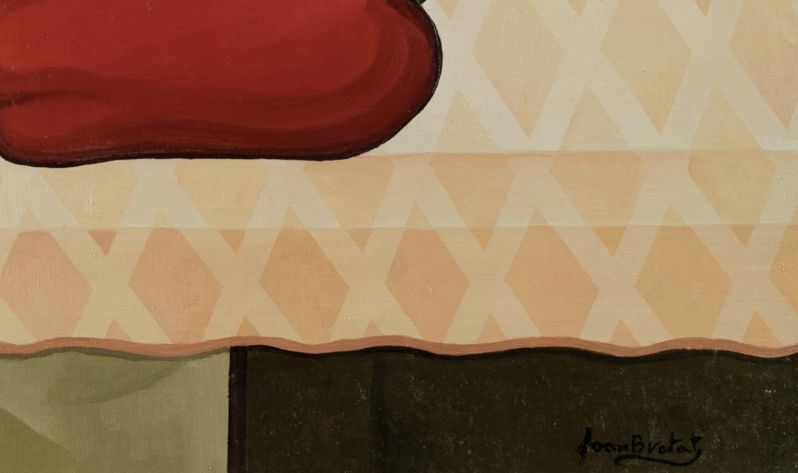 Brotat, Joan Joan Brotat Vilanova nació en Barcelona en el año 1920; y murió en 1990. Se formó en el Ateneo de su ciudad natal y en la Academia Martínez. Luego ingresó en la Escuela de Artes y Oficios y en el Fomento de Artes Decorativas. También estudió grabado en el Conservatorio de las Artes del Libro. Su obra está inscrita dentro de la nueva figuración catalana. Siempre se mantuvo al margen de los grupos artísticos surgidos en Cataluña, debido a su original manera de entender la pintura. Desde sus comienzos, en la década de los cincuenta, desarrolló una figuración relacionada a “la pintura románica de su tierra y el primitivismo del pintor francés Rousseau”. En los años sesenta realizó “una pintura matérica e informalista”, dentro del ámbito del grupo catalán Dau al Set. Ya en la década siguiente, en que retornó a la figuración, consolidó su estilo, “caracterizado por figuras de grandes rostros melancólicos, la aplicación de los colores en manchas planas y la ausencia de perspectiva en las composiciones”. Su primera exposición individual fue en 1950 en la galería El Jardín de Barcelona, y desde entonces realizó muchas muestras. Cabe destacar la gran exposición homenaje organizada, en 1991, por la Caja de Ahorros de Madrid en Barcelona, en la que se presentaron óleos, dibujos, grabados y cerámicas suyas. Obtuvo estos premios: el IV Gran Premio de los Países Mediterráneos en Alejandría en 1961, la Medalla de Oro Rafael Zabaleta y el Premio Ciudad de Tarrasa, entre otros. Participó varias veces, invitado por Eugenio D´Ors, en el Salón de los Once. En total realizó más de 100 exposiciones por el mundo. Su obra está presente en numerosos museos, como: • Museo de Arte Contemporáneo de Barcelona • Museo de Arte Moderno de Madrid.