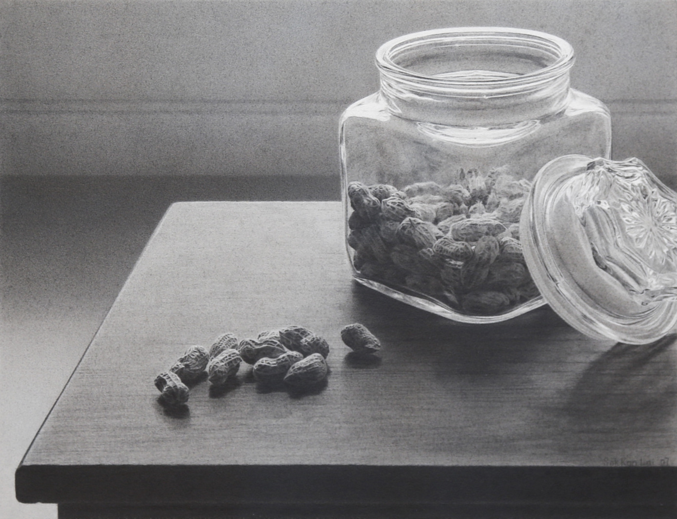 Sok Kan Lai es una artista de Hong Kong. Nacida en la antigua colonia británica, en 1959. Después de pasar por Canadá y Francia, donde parece que se formó artísticamente, reside desde 1981, en Cataluña. Formalmente las obras de Sok Kan Lai se distinguen por el grado de detallismo y el gusto por las tonalidades grises. Iba a escribir que la tonalidad bicromática quizás sea influencia de la fotografía, pero también es verdad que dentro del blanco, el negro y el gris existen diferentes tonalidades, que pueden ser entendidas como otra gamma de policromía. En un dibujo y en la acuarela esto es importante, porque el artista debe conseguir manualmente los diferentes matices. En este caso se trata de un problema, propiamente pictórico. La fotografía, nada. Cabe destacar el grado de control en el dibujo y en la acuarela que demuestra la artista, como una de las claves poéticas del estilo de Sok Kan Lai. En los bodegones la historia, muchas veces está, no tanto en lo que se representa, sino en el cómo. Nos podemos fijar, también, en la austeridad general de la composición: pocos elementos, mucho espacio vacío. Podemos, asimismo, considerar la influencia fotográfica en algunas composiciones. Pero, quizás más visible, sea la influencia o, si la autora es realmente consciente de ello, la reinterpretación, de los bodegones de Zurbarán. La austeridad y pulcritud de las composiciones y su, a priori, tiempo largo de ejecución, obviamente también se asocia con actitudes bien aprendidas en Oriente. La paciencia, la constancia. El recuerdo de oriente es también visible en alguno de los alimentos representados. Aunque la mezcla de productos nos habla de una artista transcultural, como delatan las galletas «maría». No es pueril fijarse en estos detalles, si entendemos el bodegón como un retrato del estilo de vida de la artista. También el trabajo sobre papel y las técnicas parecen responder a una sensibilidad concreta. Aunque su uso sea normal en nuestro entorno. Un artista trata de reflejarse, lo mejor que puede, en su obra. Y detrás de la sensibilidad que le empuja a expresarse, no es indiferente ni el tema, ni la técnica, ni desde luego, el estilo, y cualquier detalle de gusto. En el caso de los artistas orientales, la atención a la sensibilidad parece ser importante. Más incluso que en algunos artistas europeos, que con el deseo de romper o provocar, disparan obra por delante de su propio horizonte de gustos. En este sentido la obra de Sok Kan Lai parece ser de una absoluta coherencia personal.