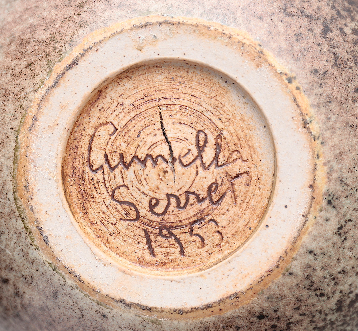 cumella 6 Antoni Cumella Serret ( Granollers 1913-1985). Su padre, que era joyero, murió cuando él tenía tres años. Cuando tenía siete años su madre se casó con Josep Regàs, alfarero, que le enseña este arte en un principio. Con 15 años participa en su primera exposición colectiva en los locales de l’Unió Liberal de Granollers. La exposición universal de Barcelona en 1929 le permite conocer el trabajo escultórico presentado, especialmente el del alemán Mies van der Rohe y las obras de Manolo Hugué. Realiza estudios nocturnos de cerámica en l’Escola del Treball deBarcelona donde conoce la obra de Gaudí. Desde 1935 es profesor de cerámica en el Grup Escolar Lluís Vives de Barcelona. En esa época conoce a Pau Casals,Manolo Hugué, Miquel Llor y Josep Llorens i Artigas con quienes mantendrá una gran amistad. Durante la guerra civil sirve como sanitario, siendo encarcelado hasta 1940 y no pudo recuperar su pasaporte hasta 1952. Expone en la Biblioteca Popular de Granollers (1932) y participa en tres ediciones consecutivas de la Exposició de Primavera de Barcelona (1933, 1934 y 1935), pero hasta 1936 no realiza su primera exposición personal en Barcelona, en las galerías Syra, dónde continúo exponiendo en los años posteriores a la guerra: 1941, 1942, 1951, 1954, 1956 y 1958. En 1936 participa en la VI Trienal de Milán donde obtiene la Medalla de Oro, obteniéndolo nuevamente en 1951 y 1957. En 1959 junto a Cirici y Romà Vallès, en una iniciativa pionera en España respecto a los estudios de diseño, fundan la Escuela de Arte del FAD (Fomento de las Artes Decorativas). En 1980 se le concede el Premio Nacional de Artes Plásticas. En 1982 le son otorgadas la Creu de Sant Jordi y la Medalla de Oro del FAD, y es nombrado Hijo Predilecto de la Ciudad de Granollers. En 1984 realiza la Medalla del Parlamento de Cataluña.