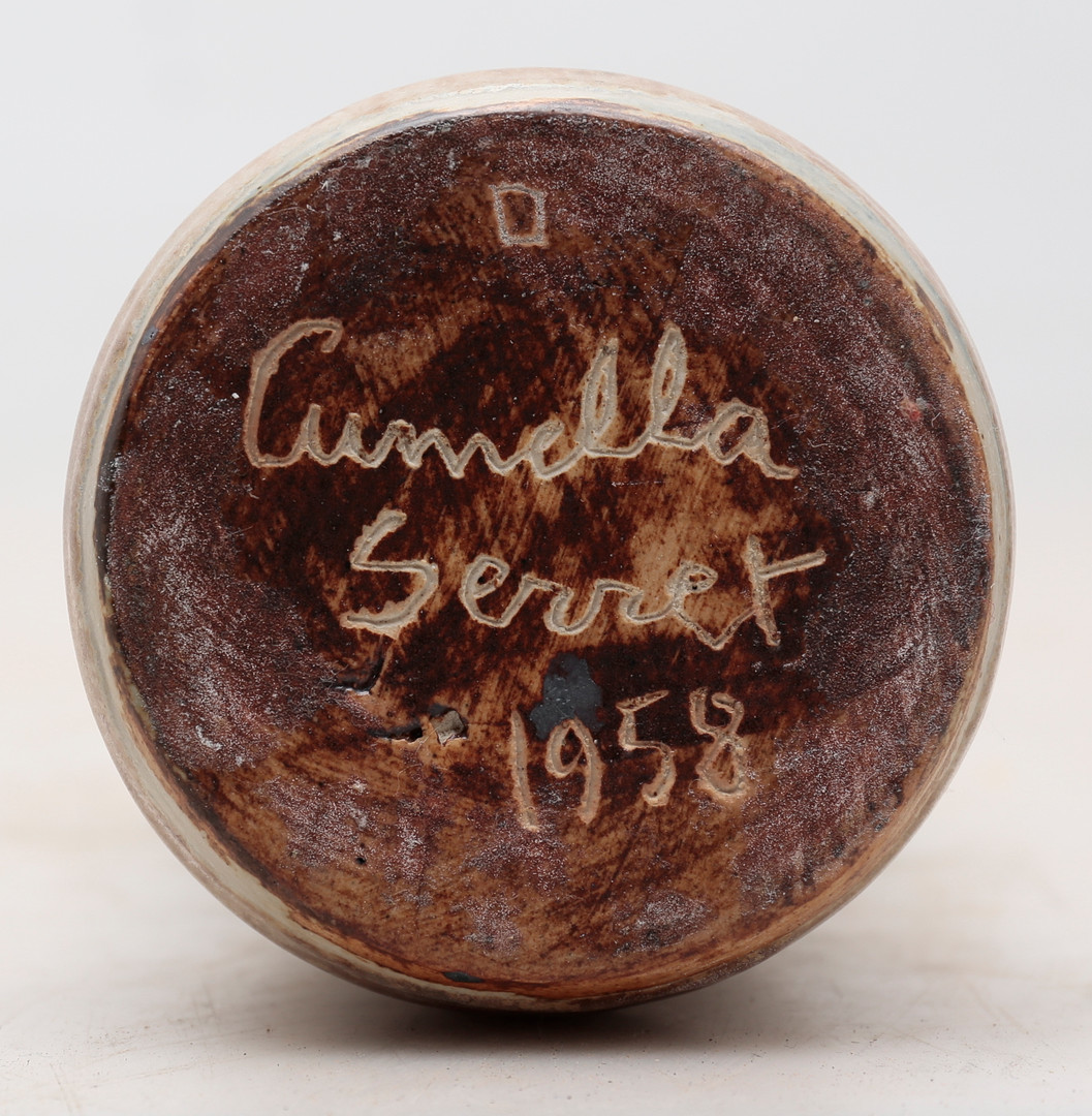 cumella 6 Antoni Cumella Serret ( Granollers 1913-1985). Su padre, que era joyero, murió cuando él tenía tres años. Cuando tenía siete años su madre se casó con Josep Regàs, alfarero, que le enseña este arte en un principio. Con 15 años participa en su primera exposición colectiva en los locales de l’Unió Liberal de Granollers. La exposición universal de Barcelona en 1929 le permite conocer el trabajo escultórico presentado, especialmente el del alemán Mies van der Rohe y las obras de Manolo Hugué. Realiza estudios nocturnos de cerámica en l’Escola del Treball deBarcelona donde conoce la obra de Gaudí. Desde 1935 es profesor de cerámica en el Grup Escolar Lluís Vives de Barcelona. En esa época conoce a Pau Casals,Manolo Hugué, Miquel Llor y Josep Llorens i Artigas con quienes mantendrá una gran amistad. Durante la guerra civil sirve como sanitario, siendo encarcelado hasta 1940 y no pudo recuperar su pasaporte hasta 1952. Expone en la Biblioteca Popular de Granollers (1932) y participa en tres ediciones consecutivas de la Exposició de Primavera de Barcelona (1933, 1934 y 1935), pero hasta 1936 no realiza su primera exposición personal en Barcelona, en las galerías Syra, dónde continúo exponiendo en los años posteriores a la guerra: 1941, 1942, 1951, 1954, 1956 y 1958. En 1936 participa en la VI Trienal de Milán donde obtiene la Medalla de Oro, obteniéndolo nuevamente en 1951 y 1957. En 1959 junto a Cirici y Romà Vallès, en una iniciativa pionera en España respecto a los estudios de diseño, fundan la Escuela de Arte del FAD (Fomento de las Artes Decorativas). En 1980 se le concede el Premio Nacional de Artes Plásticas. En 1982 le son otorgadas la Creu de Sant Jordi y la Medalla de Oro del FAD, y es nombrado Hijo Predilecto de la Ciudad de Granollers. En 1984 realiza la Medalla del Parlamento de Cataluña.