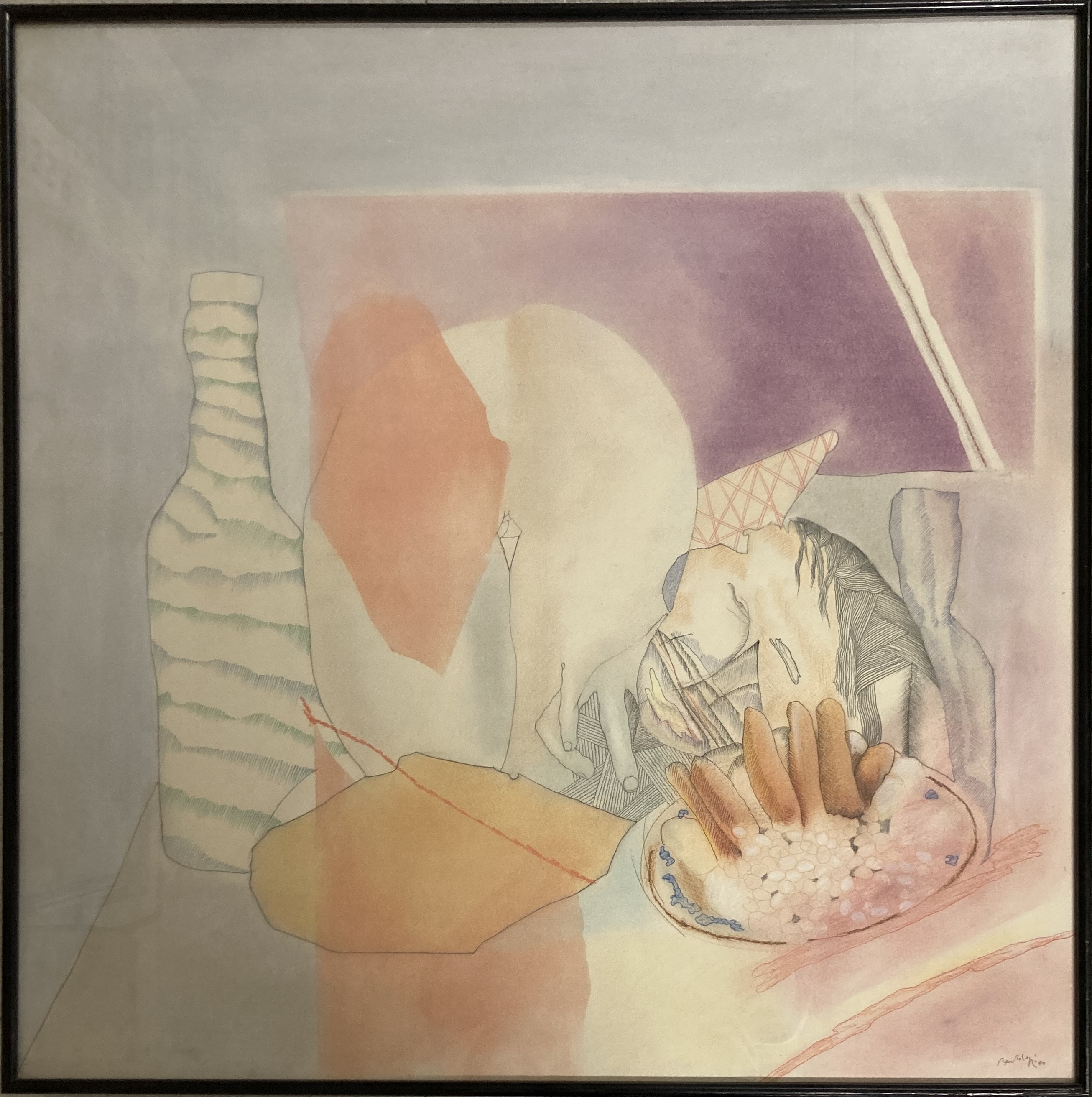Acuarela i lapis de colors sobre paper, mides 70 x 70 cm, mides amb marc 71,5 x 71,5 cm.